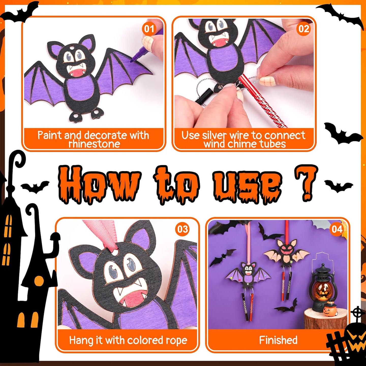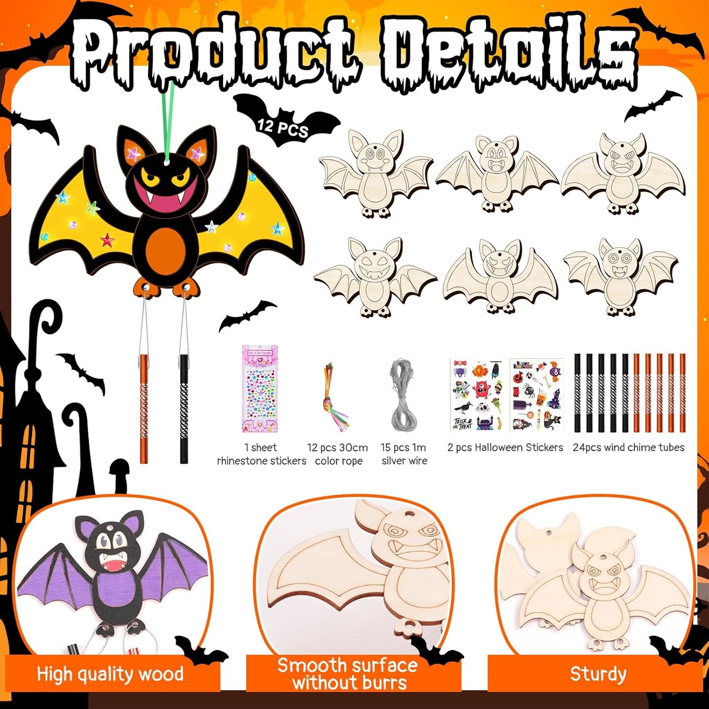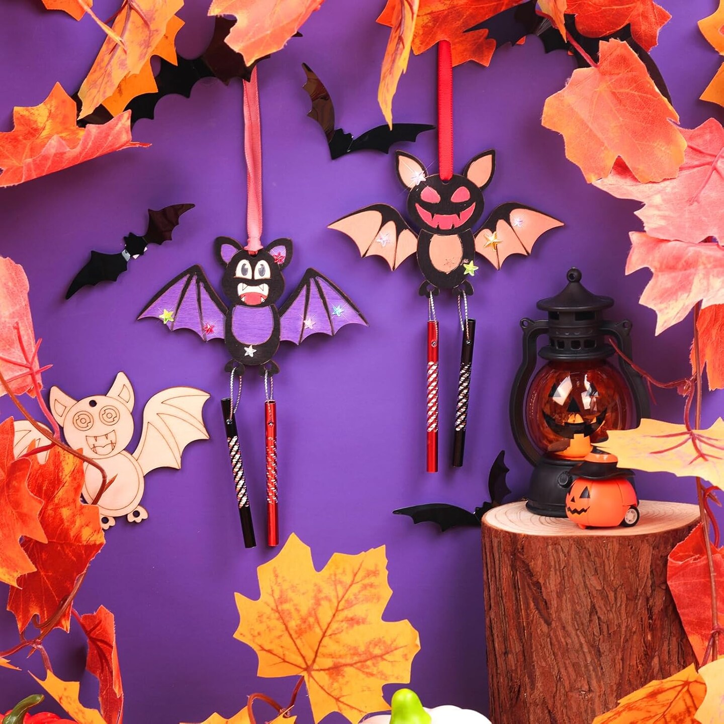 Make Your Own Halloween Bat Wind Chime DIY Coloring Paint Spooky Halloween Wooden Arts and Crafts Birthday Party Favor for Girls Boys