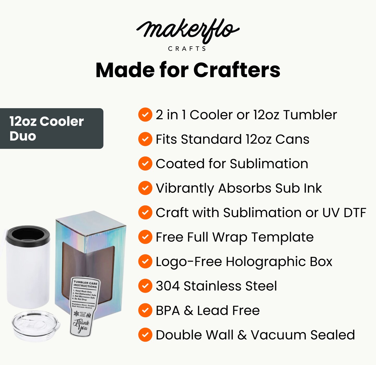 Makerflo 12 oz Thick Duozie Sublimation Blank Tumbler with Lid and Straw - Pack of 25 | Craft-Ready for DIY Gifts & Personalization (Sublimation, Epoxy, UV DTF, Vinyl, and Laser Engraving)