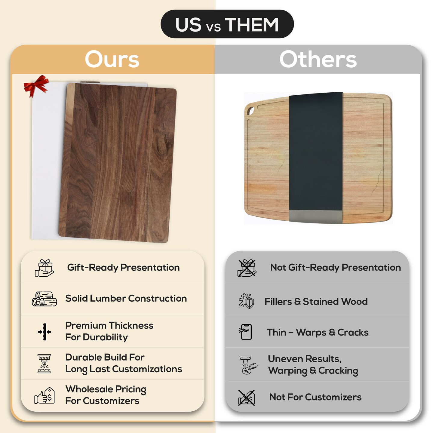 MakerFlo Blank Cutting Boards – Walnut, Rubberwood & Bamboo | Bulk & Wholesale Engraving Blanks for Crafters, Laser Engravers, Small Businesses & DIY Makers