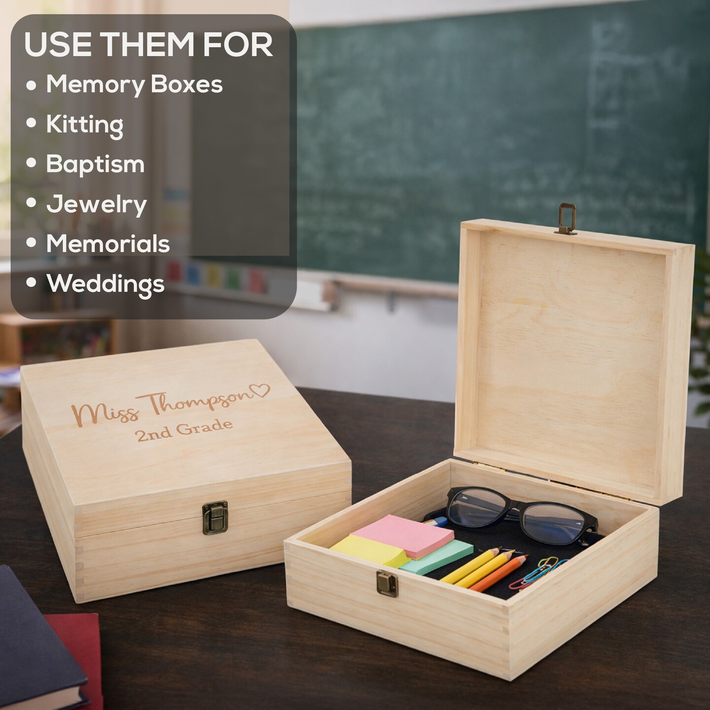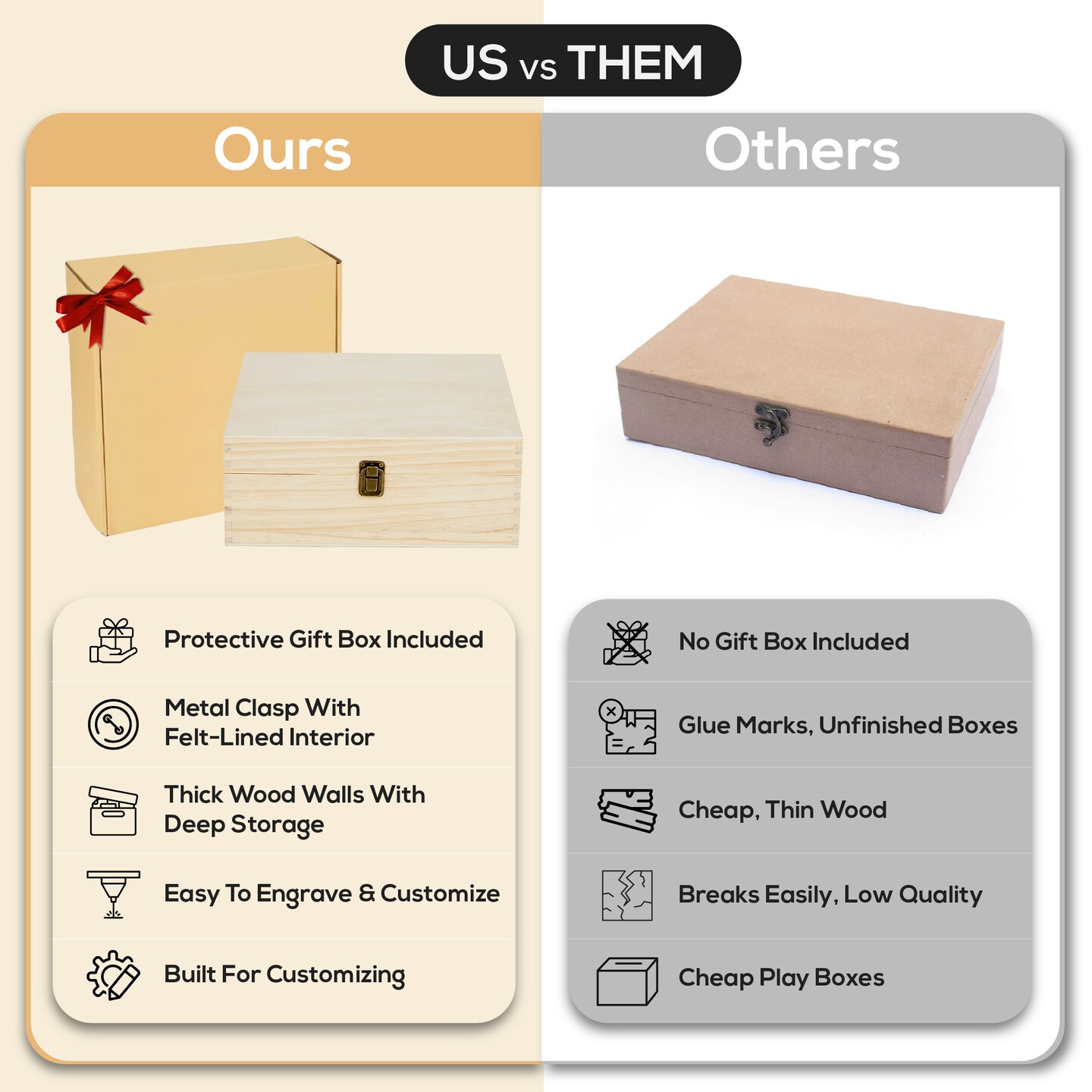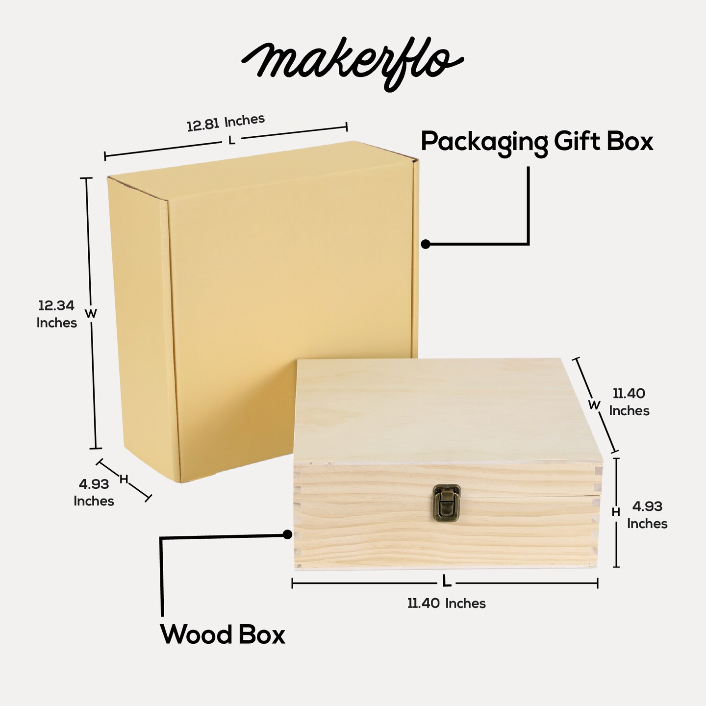 MakerFlo Large Pine Wood Memory Box with Black Felt Inside and Hinged with Clasp of Front, Keepsake Wooden Box Ideal for Craft and Personalization (Laser Engraving, Epoxy, UV DTF, and Vinyl)