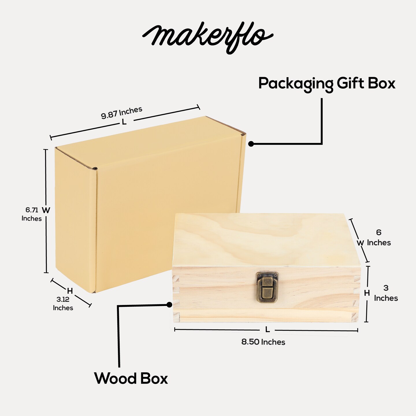 Makerflo Medium Pine Wood Memory Box with Black Felt Inside and Hinged with Clasp of Front, Keepsake Wooden Box Ideal for Craft and Personalization (Laser Engraving, Epoxy, UV DTF, and Vinyl)