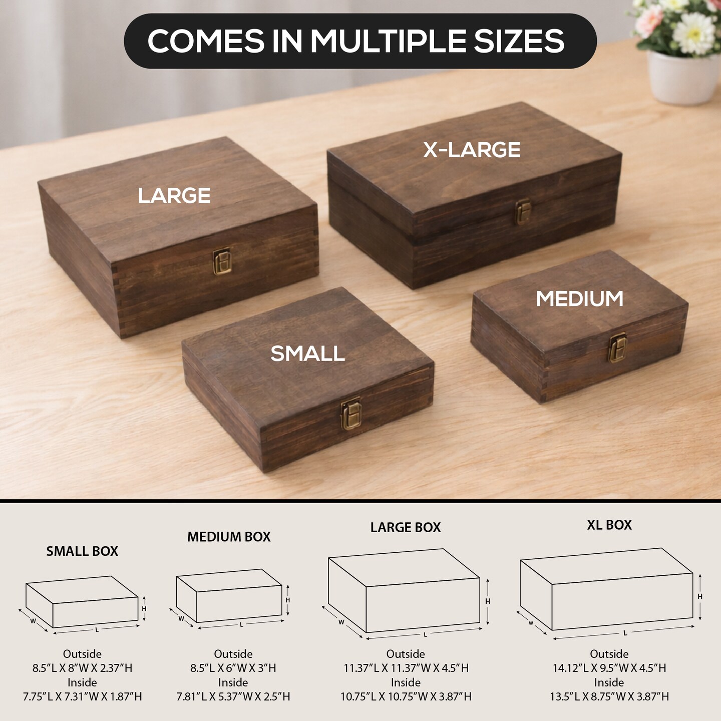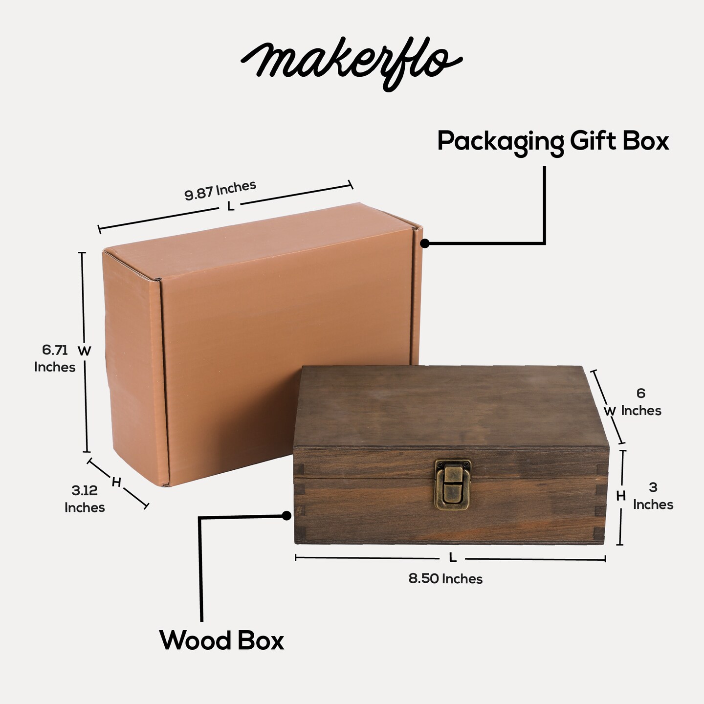 Makerflo Medium Pine Wood Memory Box with Black Felt Inside and Hinged with Clasp of Front, Keepsake Wooden Box Ideal for Craft and Personalization (Laser Engraving, Epoxy, UV DTF, and Vinyl)