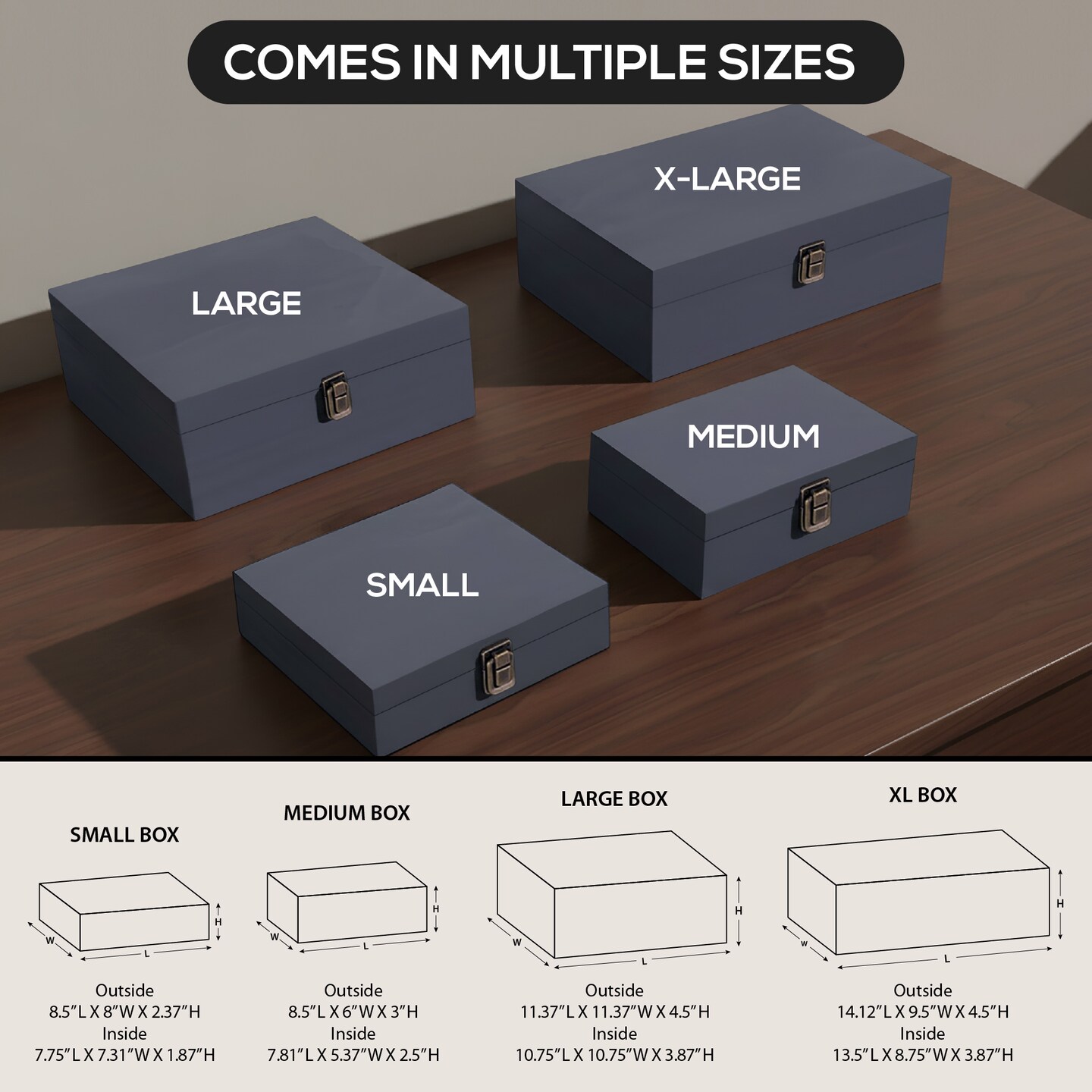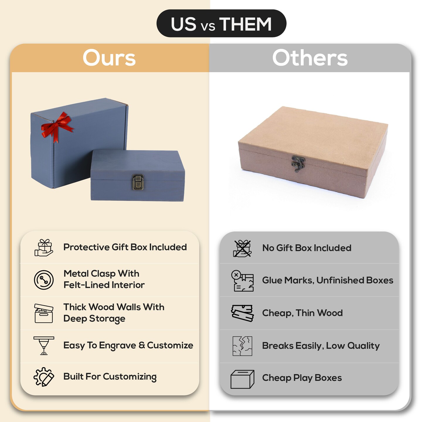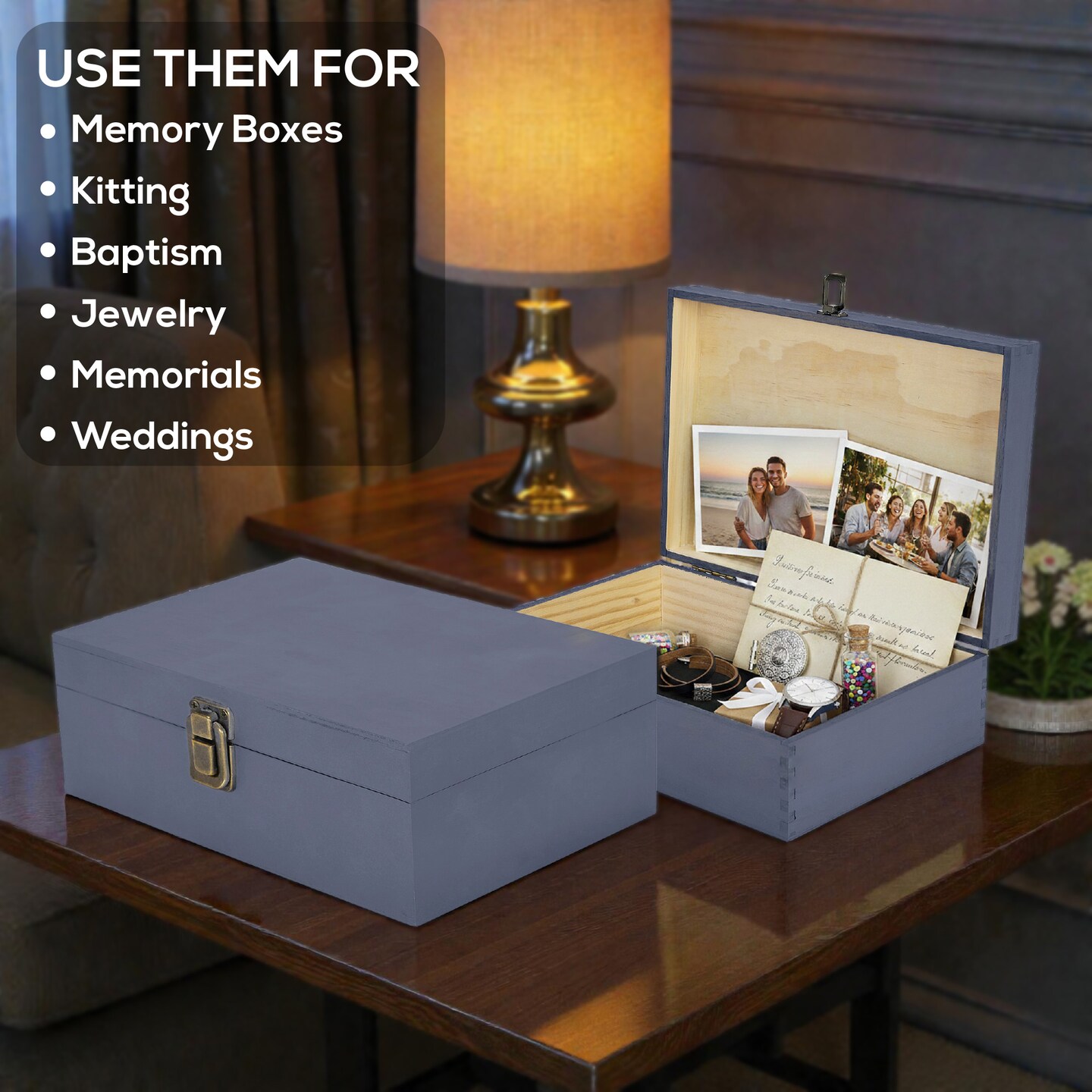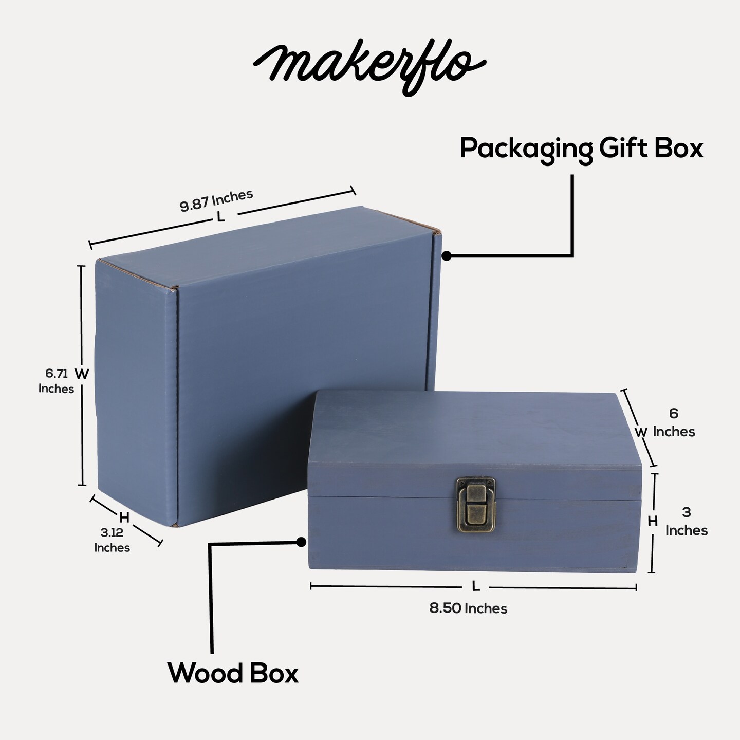 Makerflo Medium Pine Wood Memory Box with Black Felt Inside and Hinged with Clasp of Front, Keepsake Wooden Box Ideal for Craft and Personalization (Laser Engraving, Epoxy, UV DTF, and Vinyl)