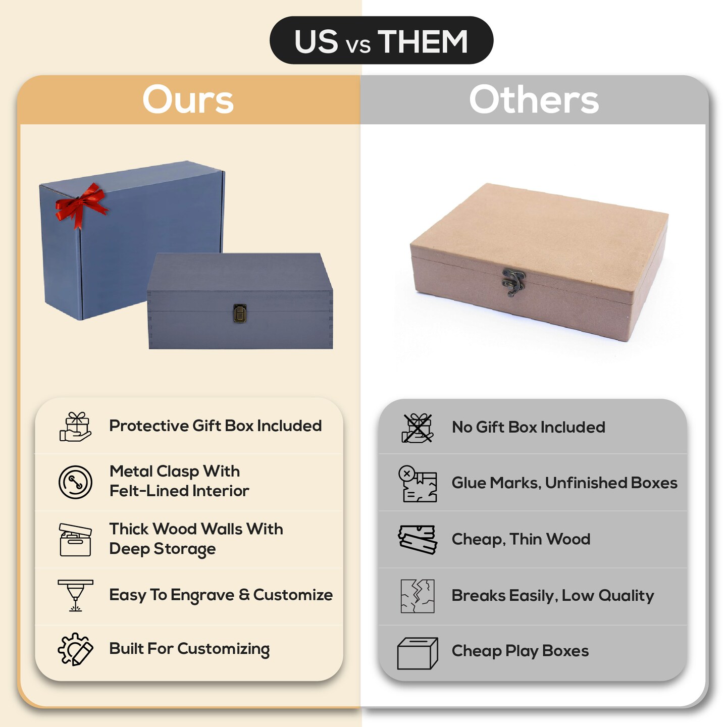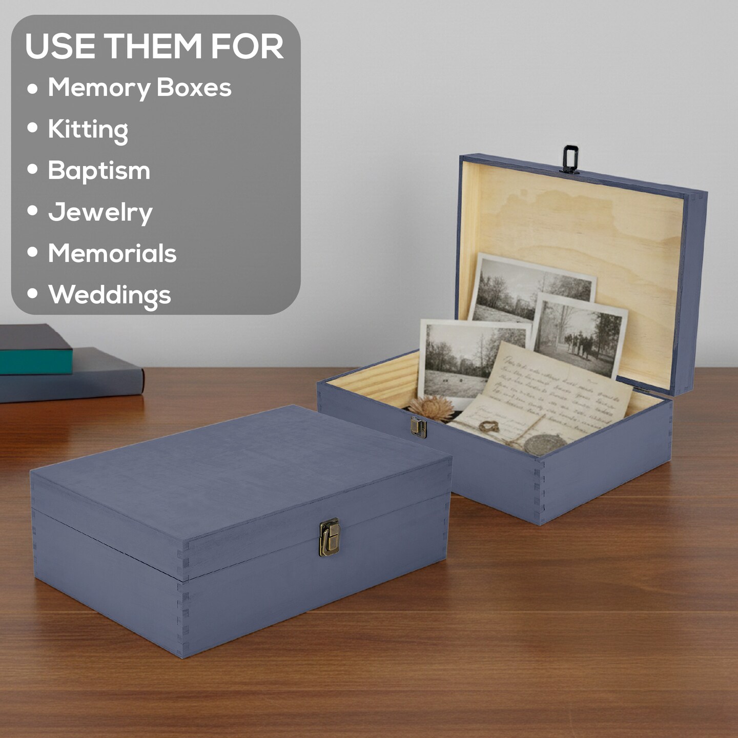 Makerflo XL Size Pine Wood Memory Box with Black Felt Inside and Hinged with Clasp of Front, Keepsake Wooden Box Ideal for Craft and Personalization (Laser Engraving, Epoxy, UV DTF, and Vinyl)