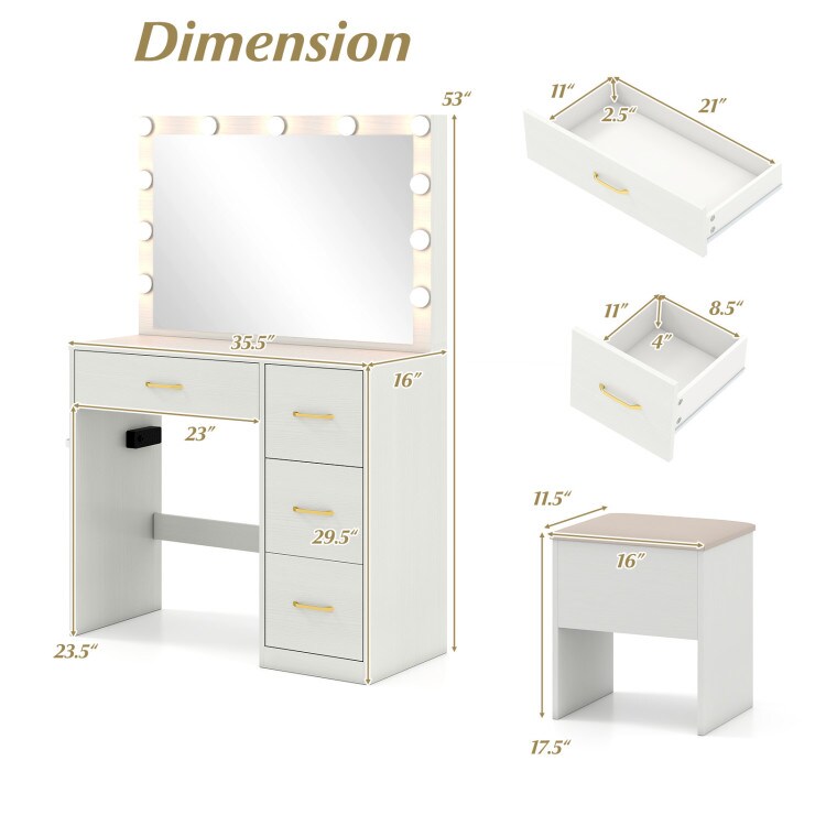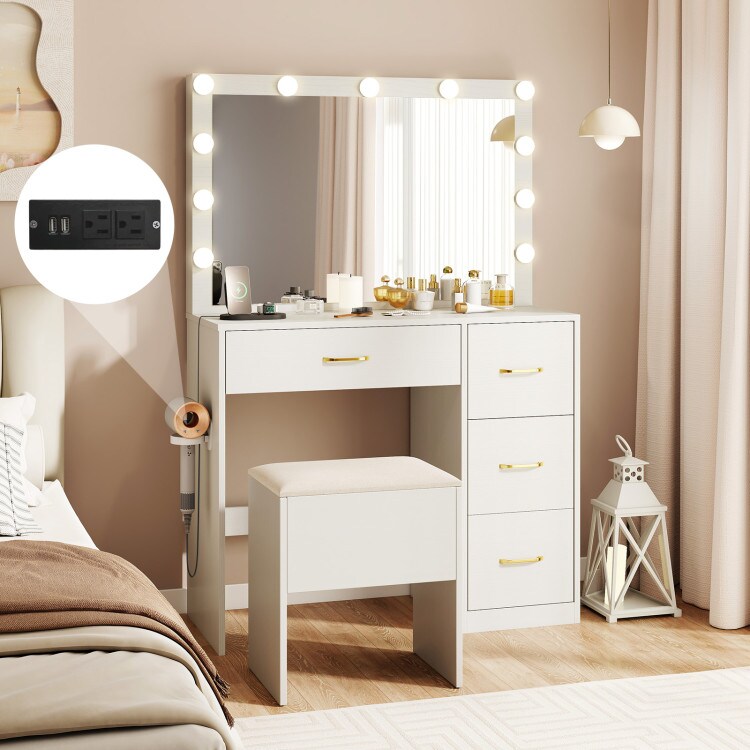 Makeup Vanity Desk with Mirror, Lights, and Built-In Power Outlets