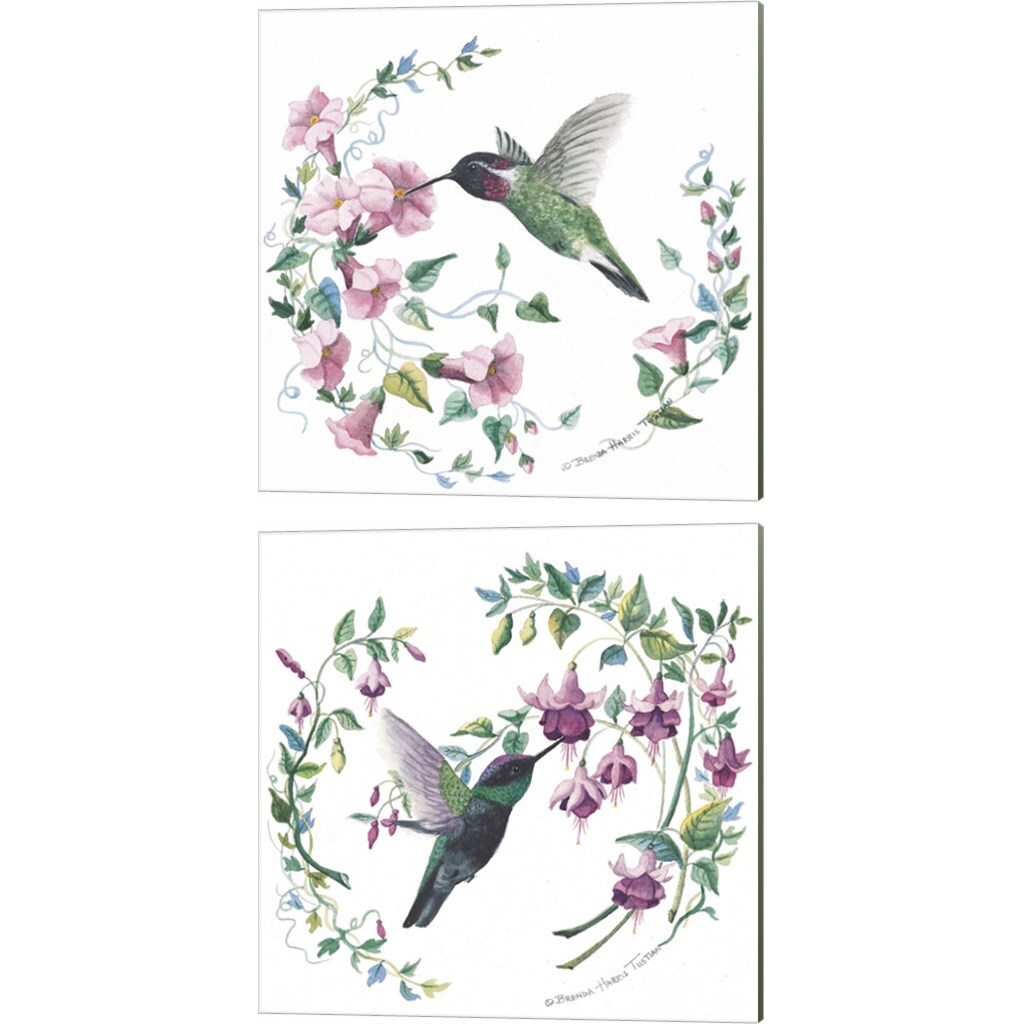 Male Costas & Magnificent Hummingbird by Brenda Tustian 14" x 14" Canvas Wall Art (Set of 2)
