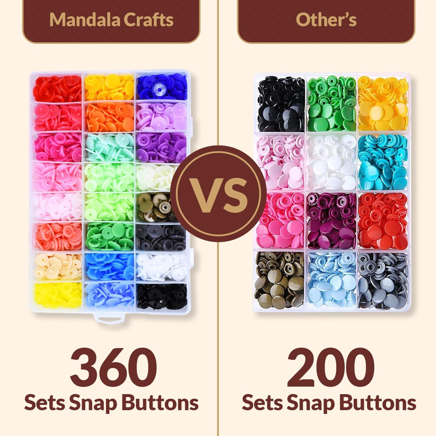 Mandala Crafts Size 20 12mm 1/2 Inch T5 Assorted No Sew Plastic Snaps Fasteners Buttons Kit with Press on Snap Tools Pliers for Sewing Fabric and Clothes, 360 Sets