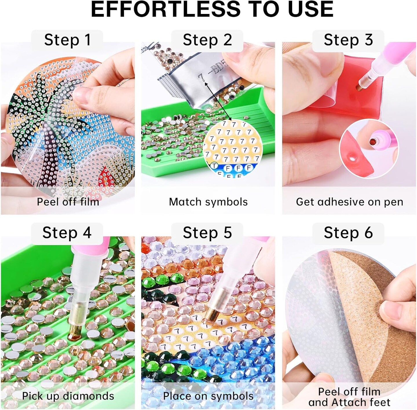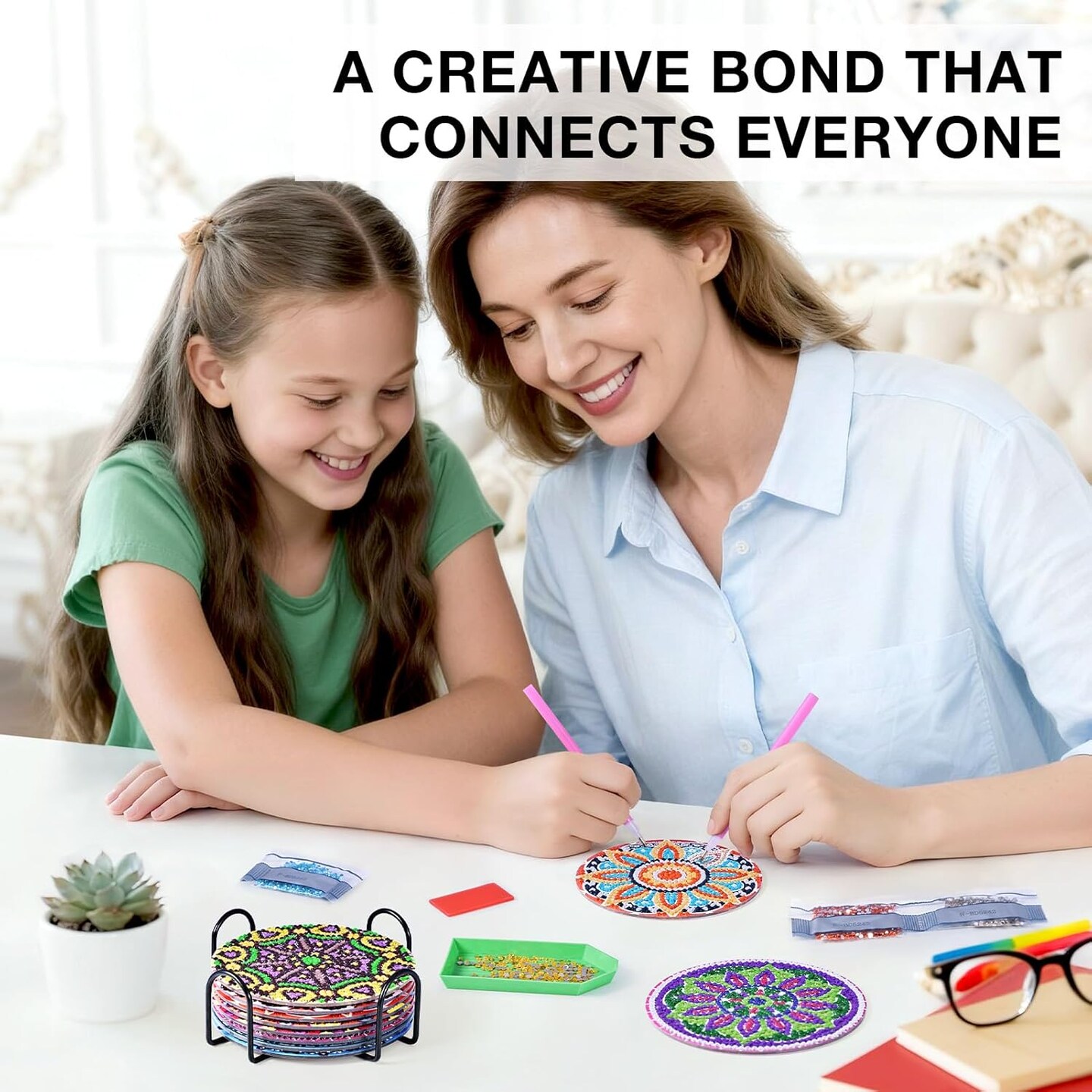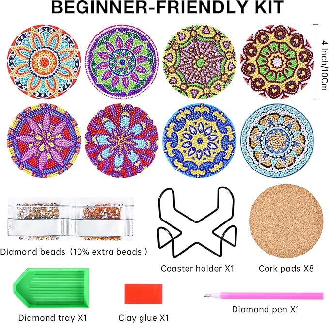 Mandala Diamond Art Coasters, GOH DODD Set of 8 Diamond Painting Kit Art Accessories, DIY Craft Supplies with Holder and Cork Pads for Adults, Decor, Gifts
