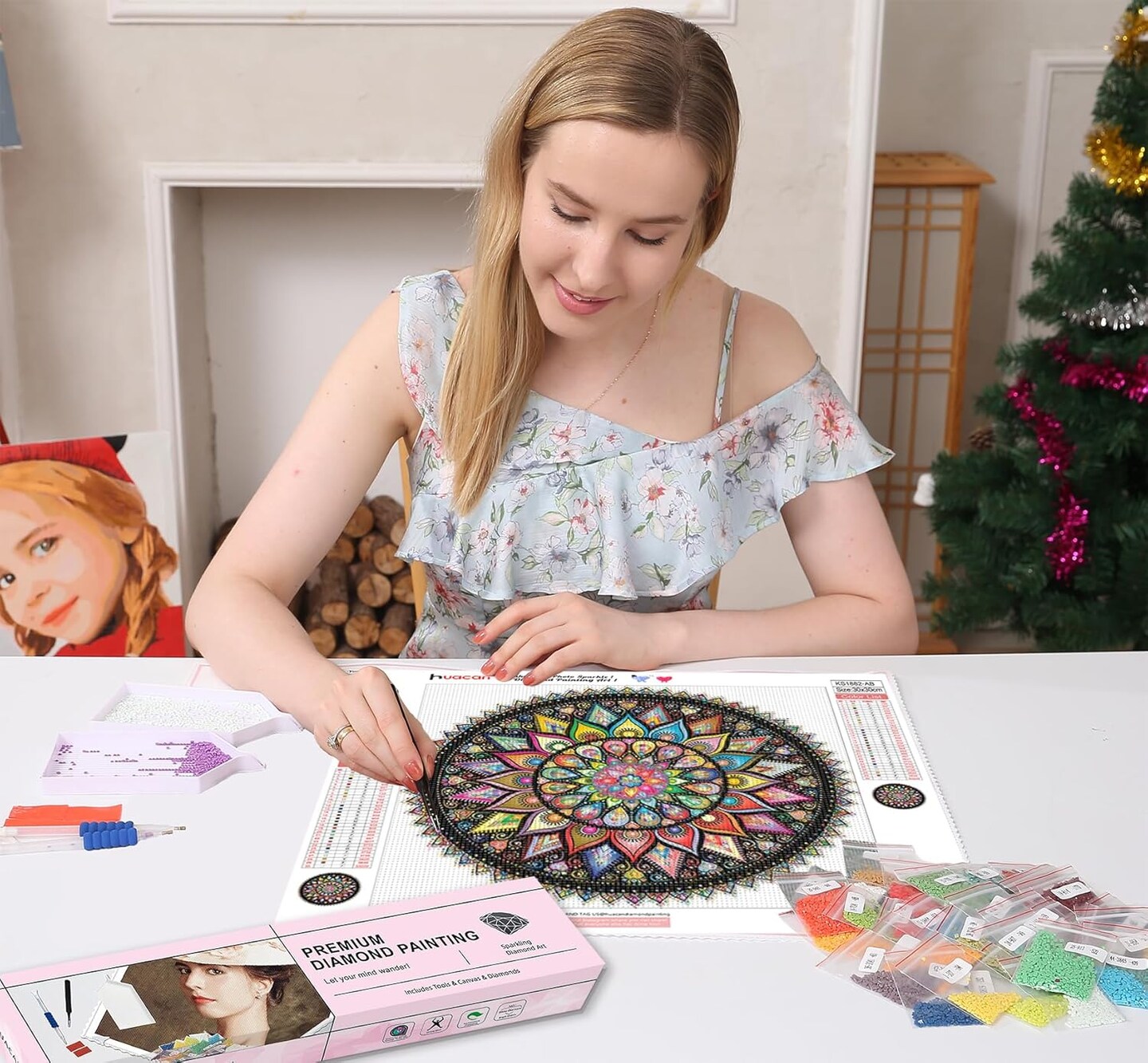 Mandala Diamond Painting Kits AB Diamond Art Kits for Adults Beginner 5D Full Drill Round Diamond Dots Painting with Diamond Gift 11.8x11.8inch/30x30cm