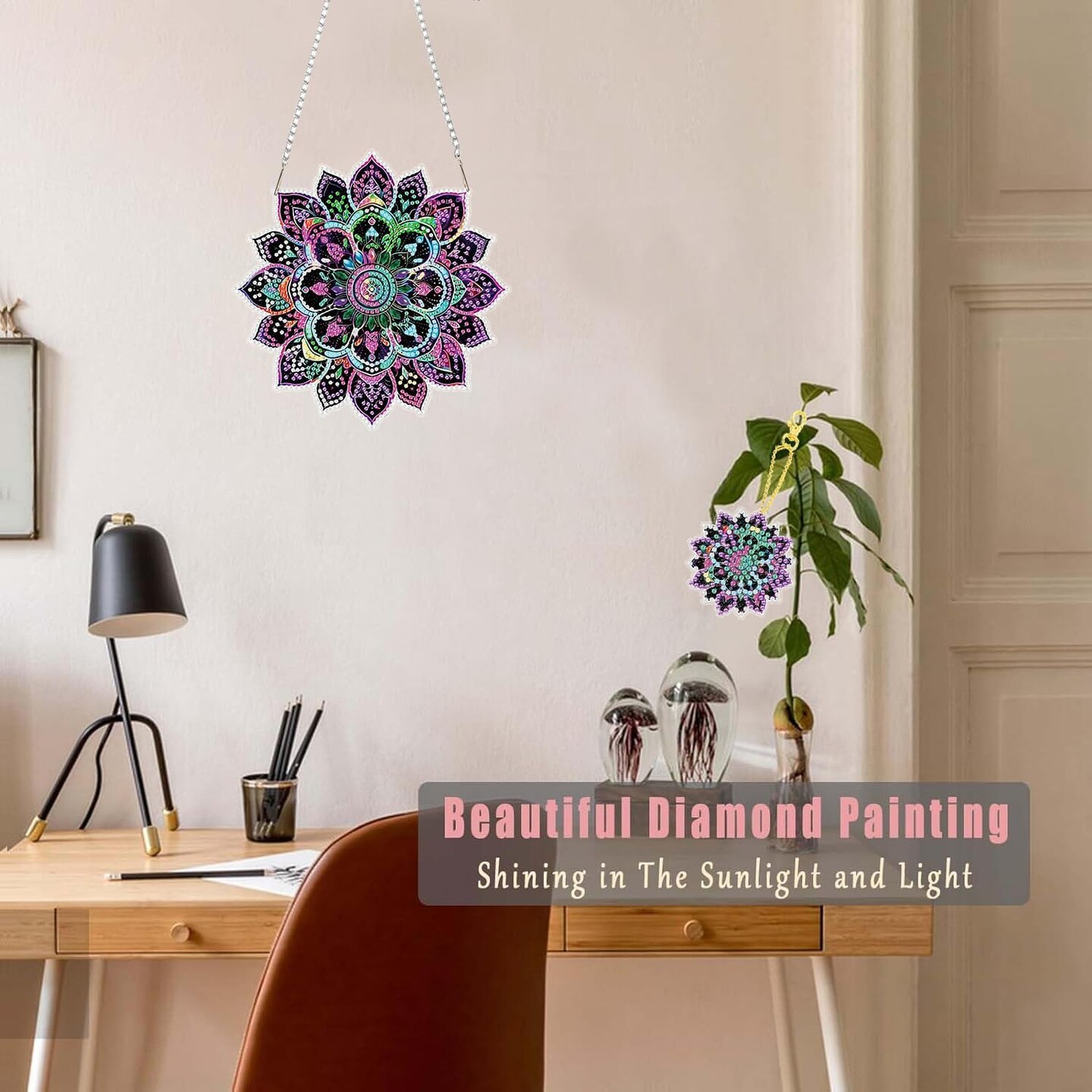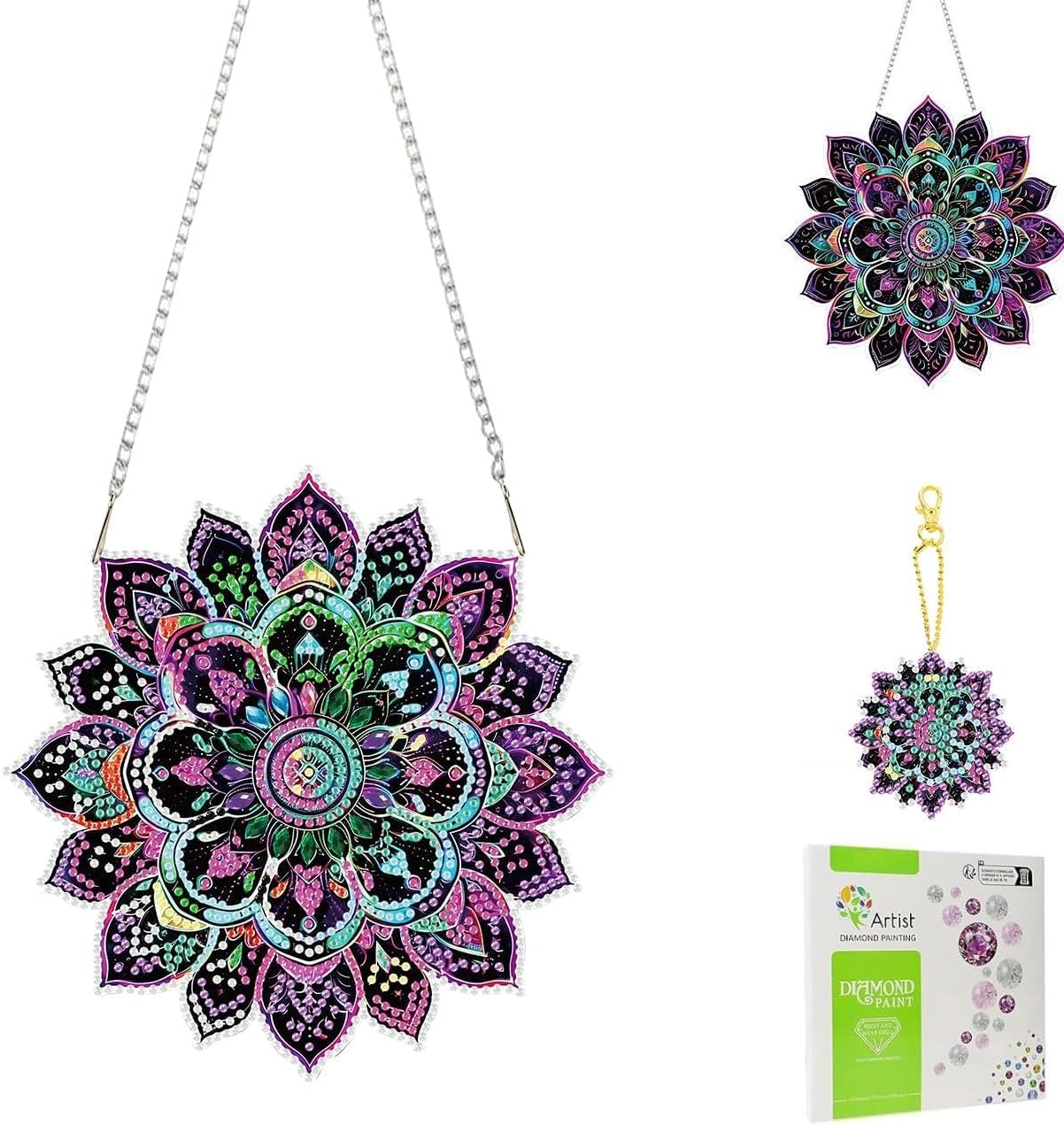 Mandala Diamond Painting Window Hanging Kit – DIY Special-Shaped Rhinestone Suncatcher Decor with Hanging Chain for Home, Garden, and Gift Giving