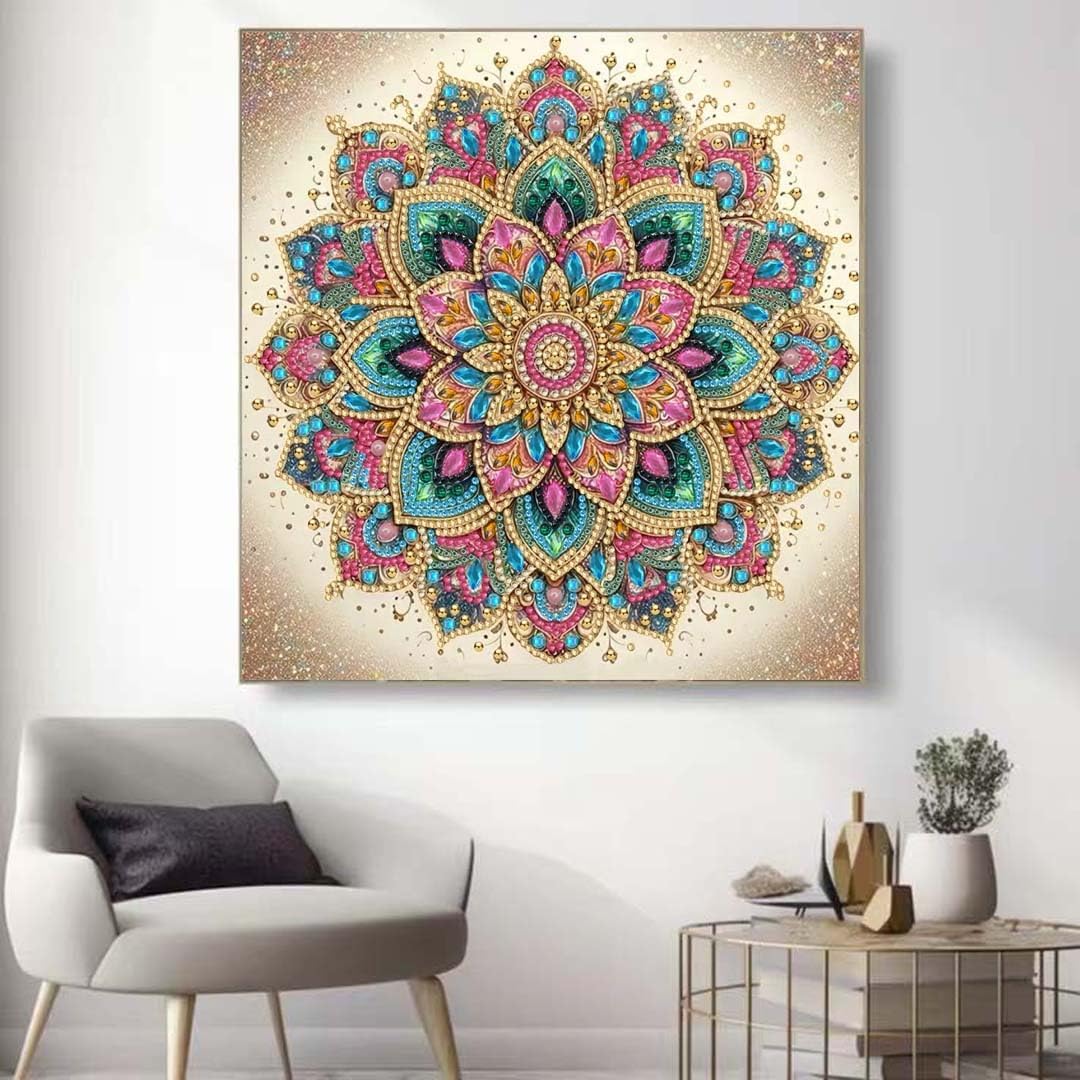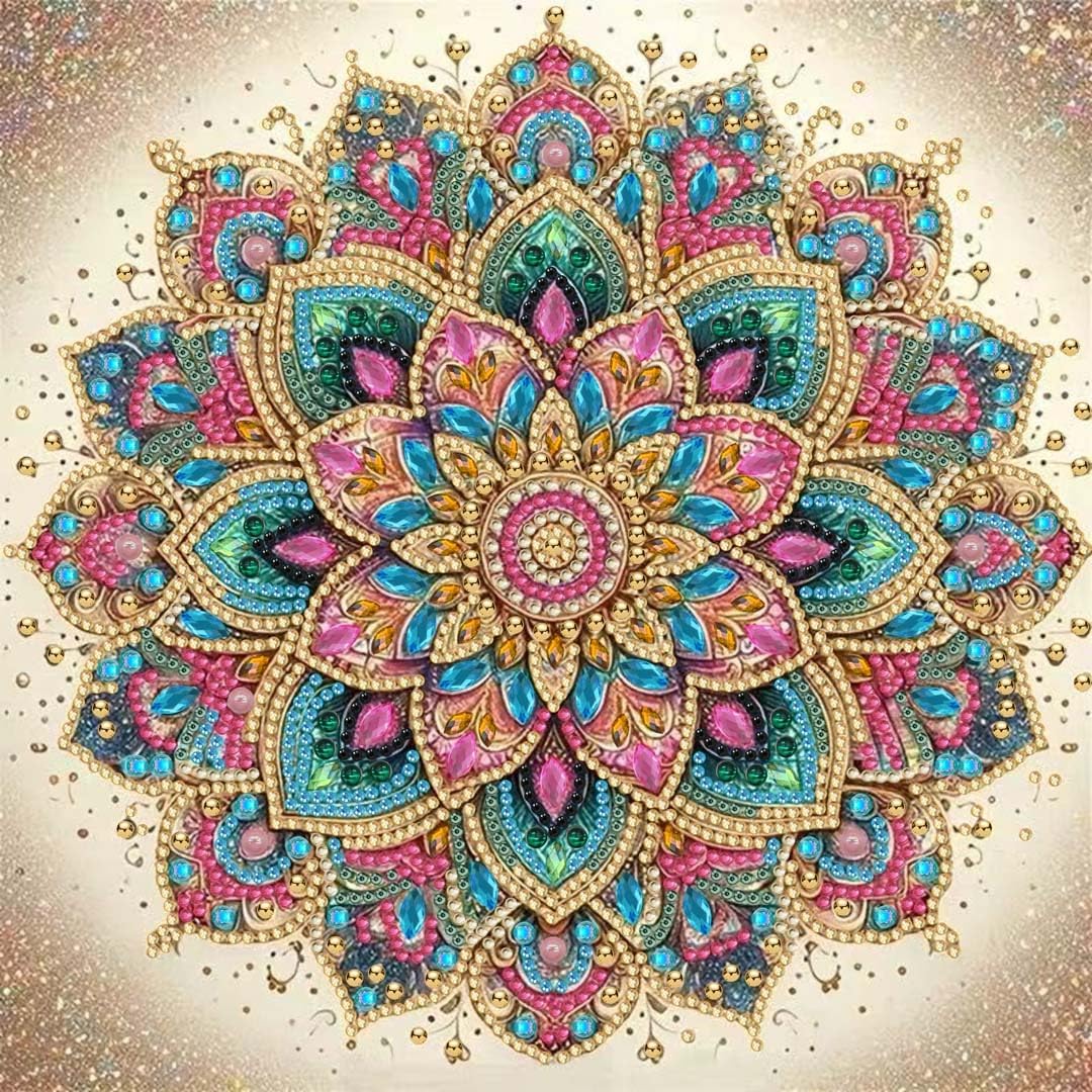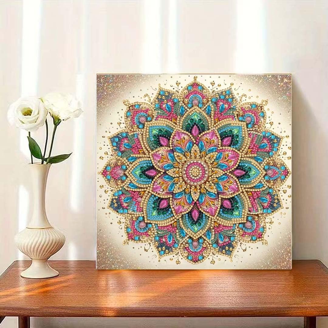 Mandala Flower 5D Diamond Art Kit for Adults – DIY Special-Shaped Rhinestone Painting, Beginner-Friendly Crystal Diamond Wall Decor, 12x12 in