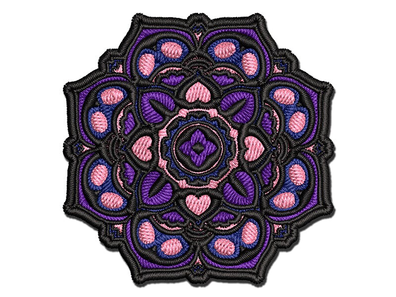 Mandala Geometric Flower Multi-Color Embroidered Iron-On or Hook & Loop Patch Applique