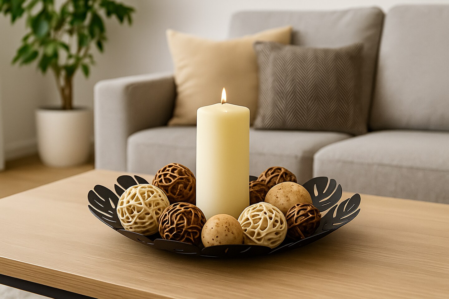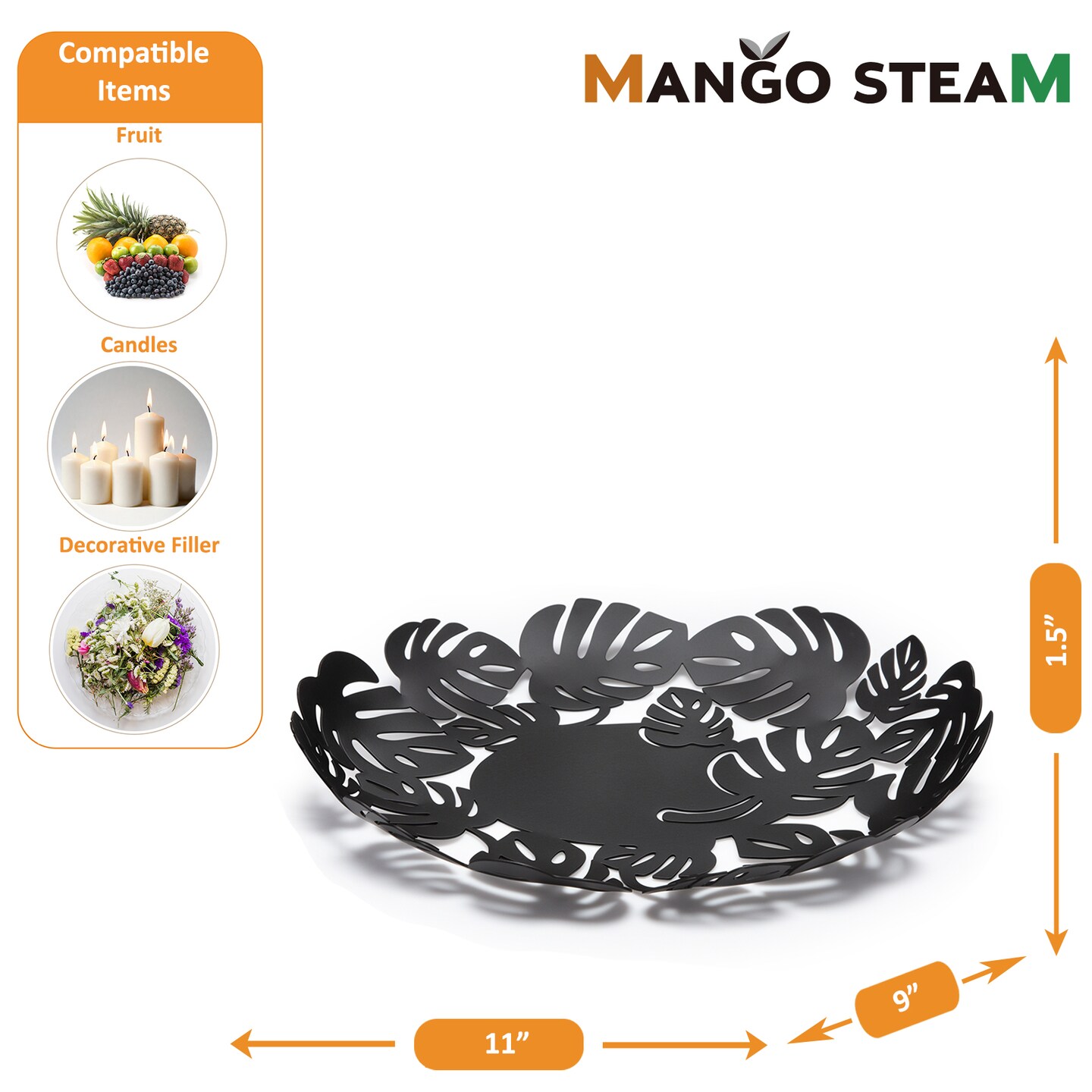 Mango Steam Leaf Decorative Metal Centerpiece Plate