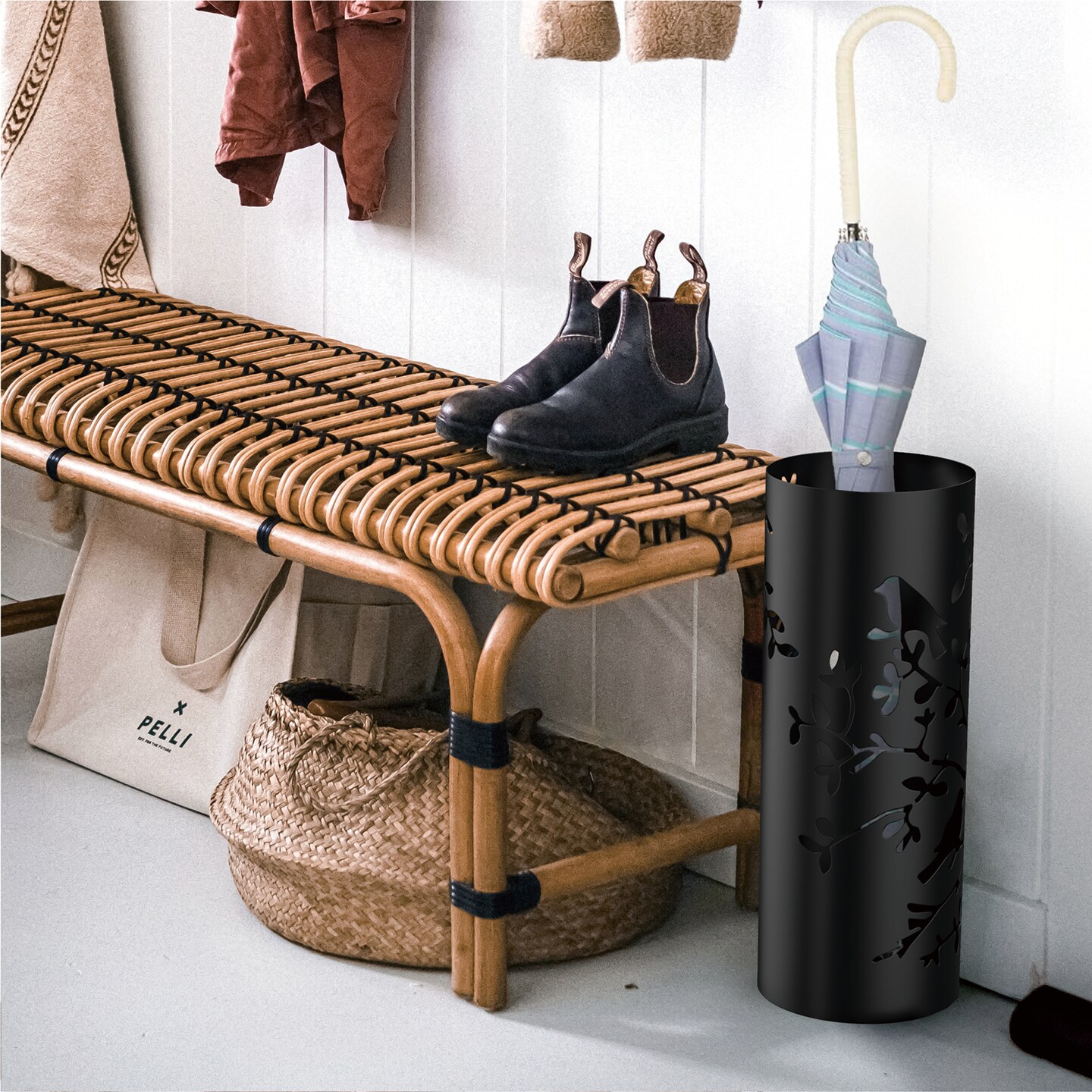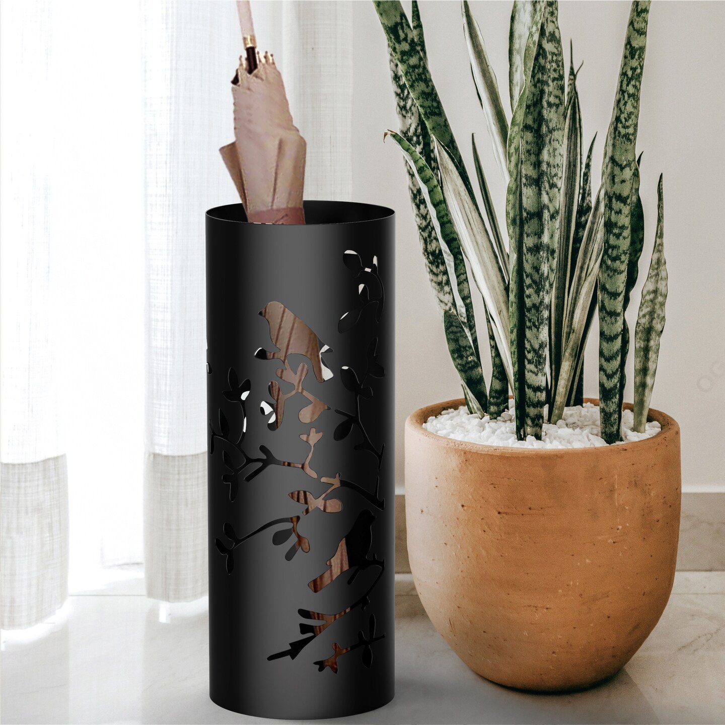 Mango Steam Round Song Bird Spiral Umbrella Stand, 21.75" Tall