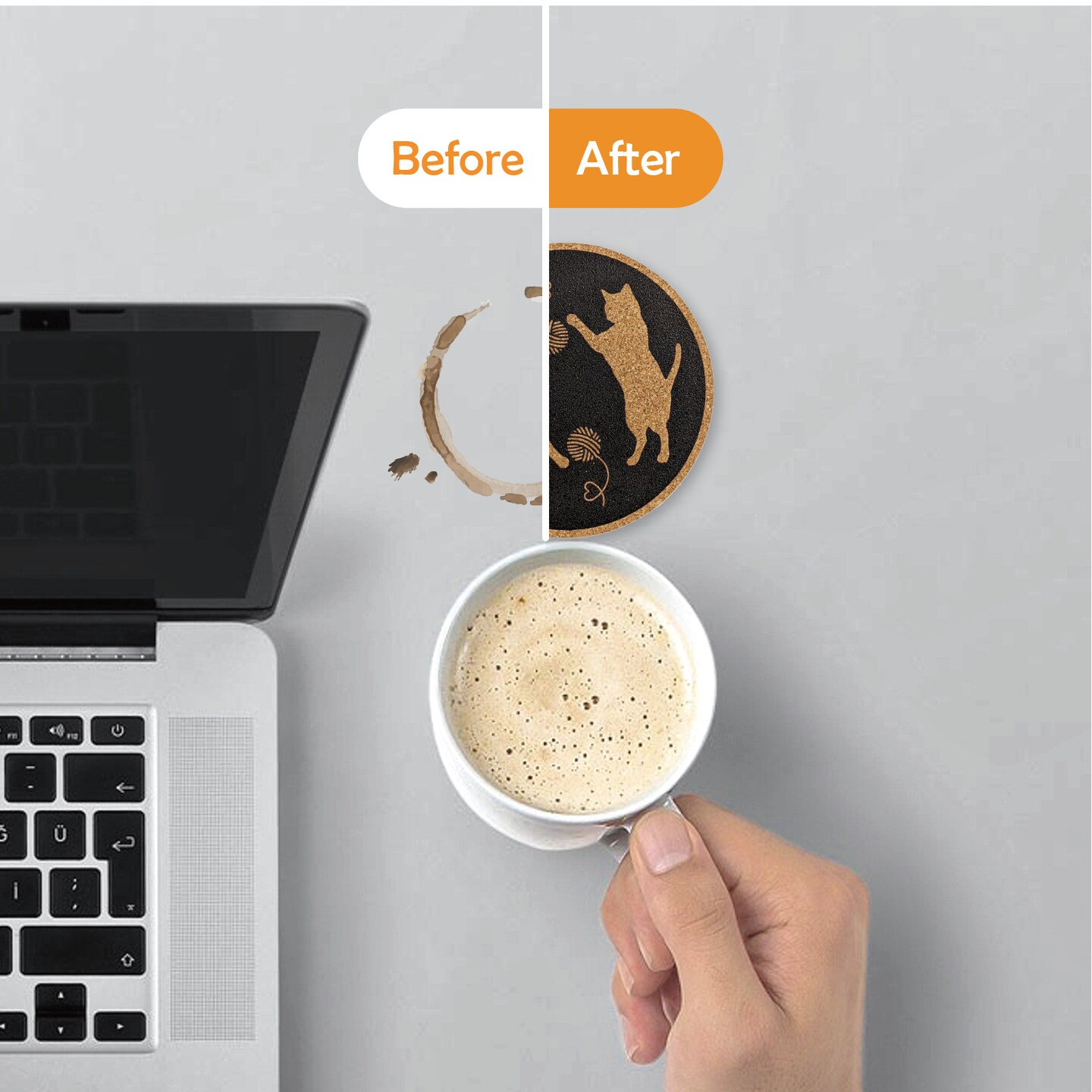 Mango Steam Set of Six Cat Cork Coasters with Decorative Cork Holder