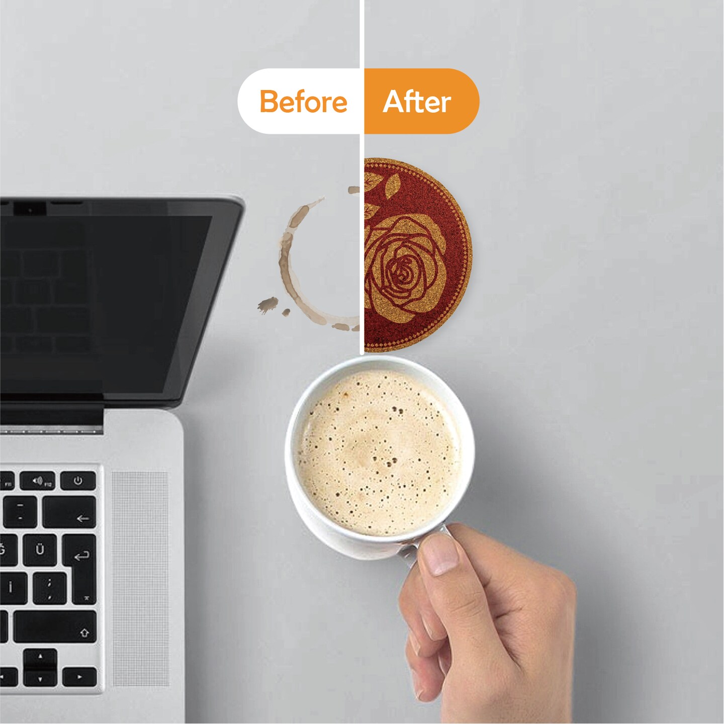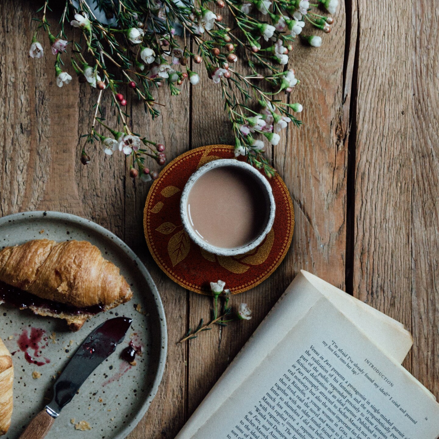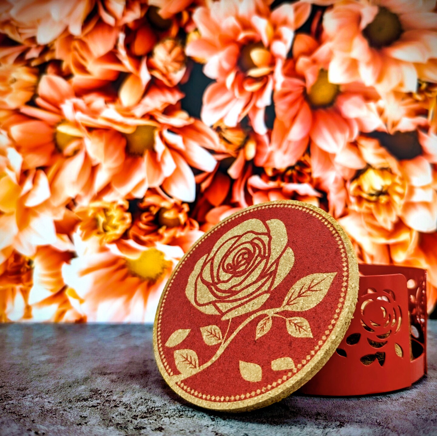 Mango Steam Set of Six Rose Cork Coasters with Decorative Cork Holder