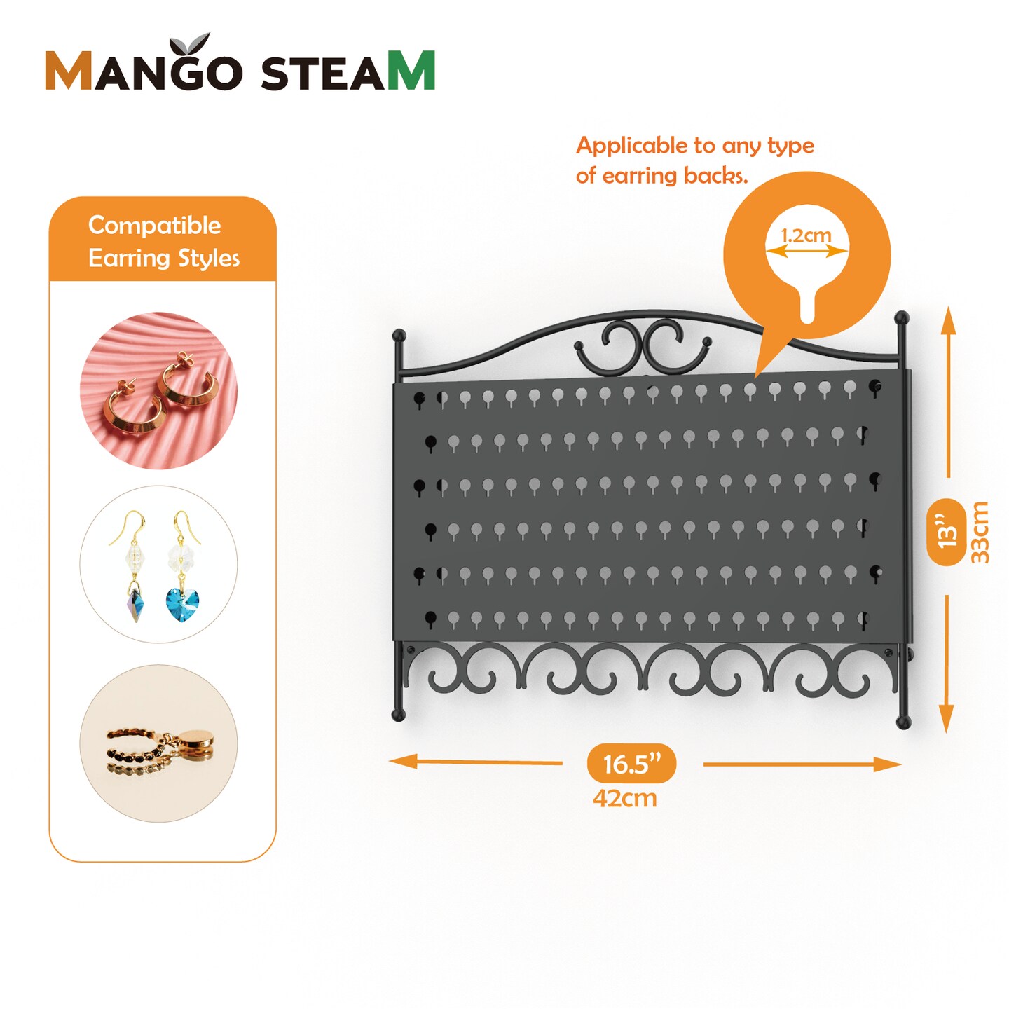 Mango Steam Wall Mounted Display Organizer for Jewelry & Earrings