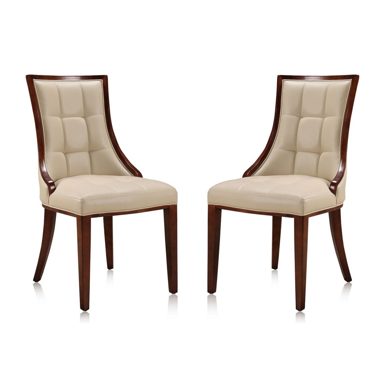 Manhattan Comfort Fifth Avenue Cream and Walnut Faux Leather Dining Chair (Set of Two)