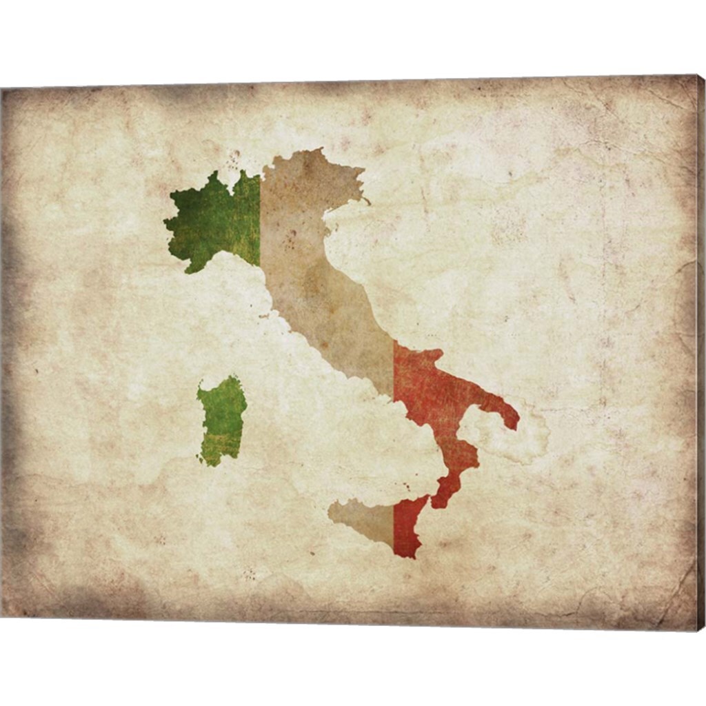 Map with Flag Overlay Italy by Color Me Happy 20" x 16" Canvas Wall Art