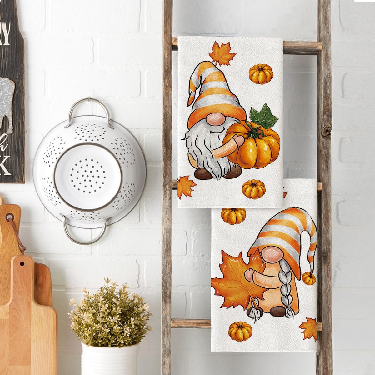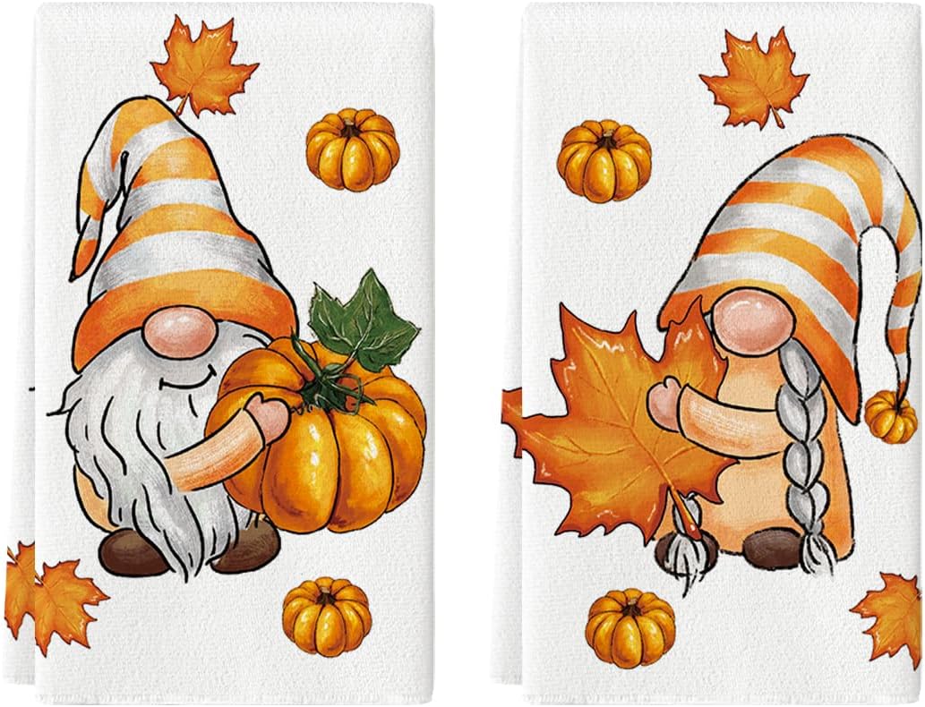 Maple Leaves Gnomes Pumpkin Fall Kitchen Towels Dish Towels(Beige)