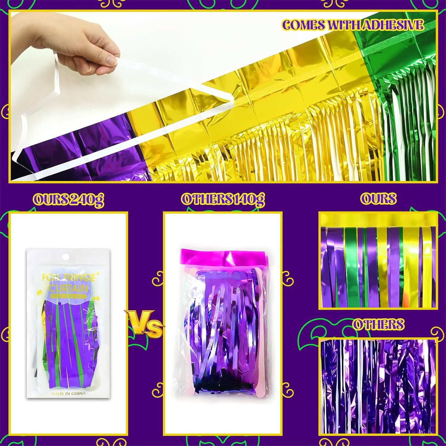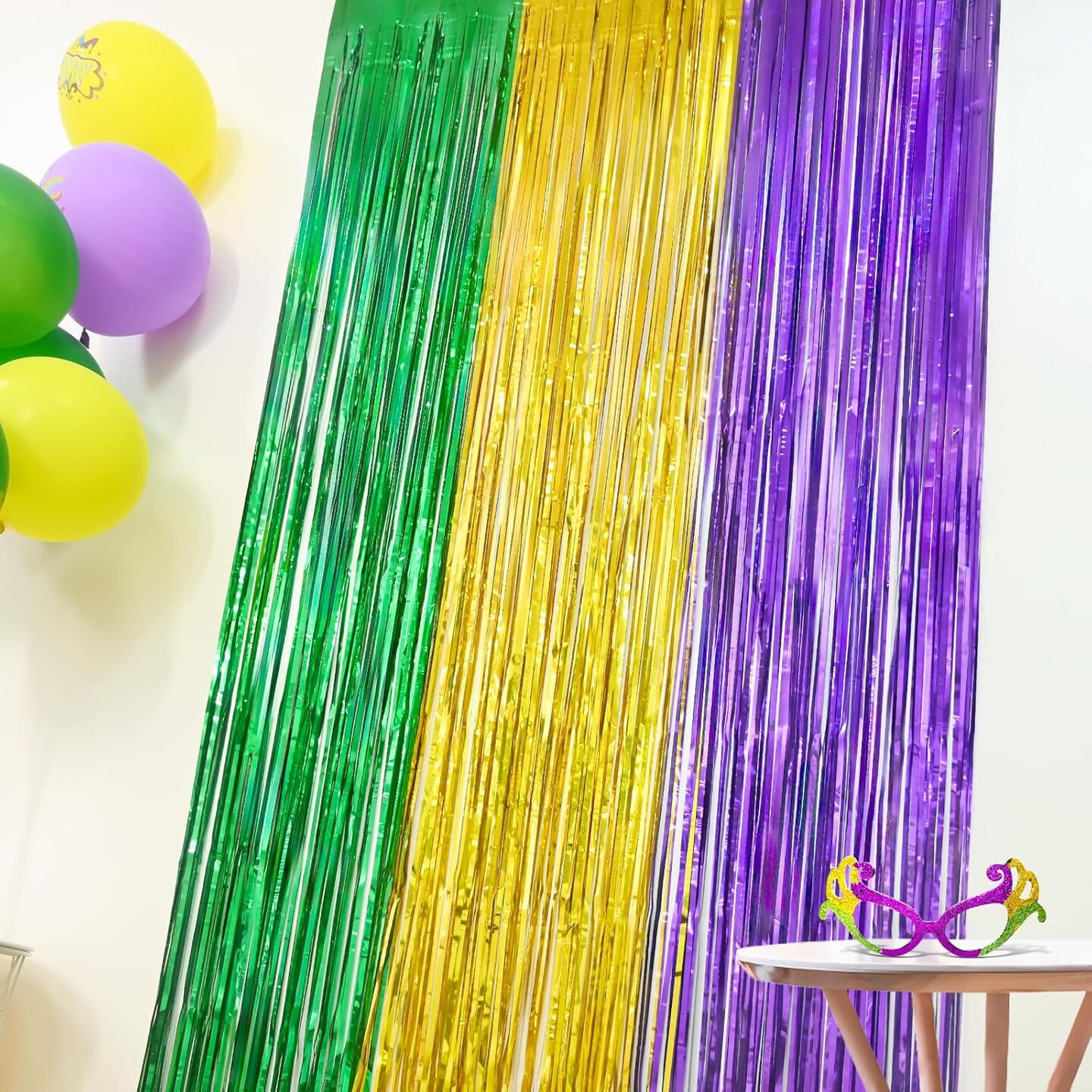 Mardi Gras Party Decorations 2 Pack 3.3 X 6.6 ft Green Gold Purple Metallic Tinsel Foil Fringe Curtains Photo Booth Props Background Decor Backdrop Streamer for Mardi Gras Carnival Birthday