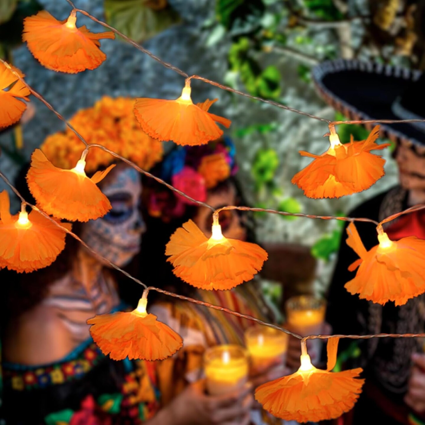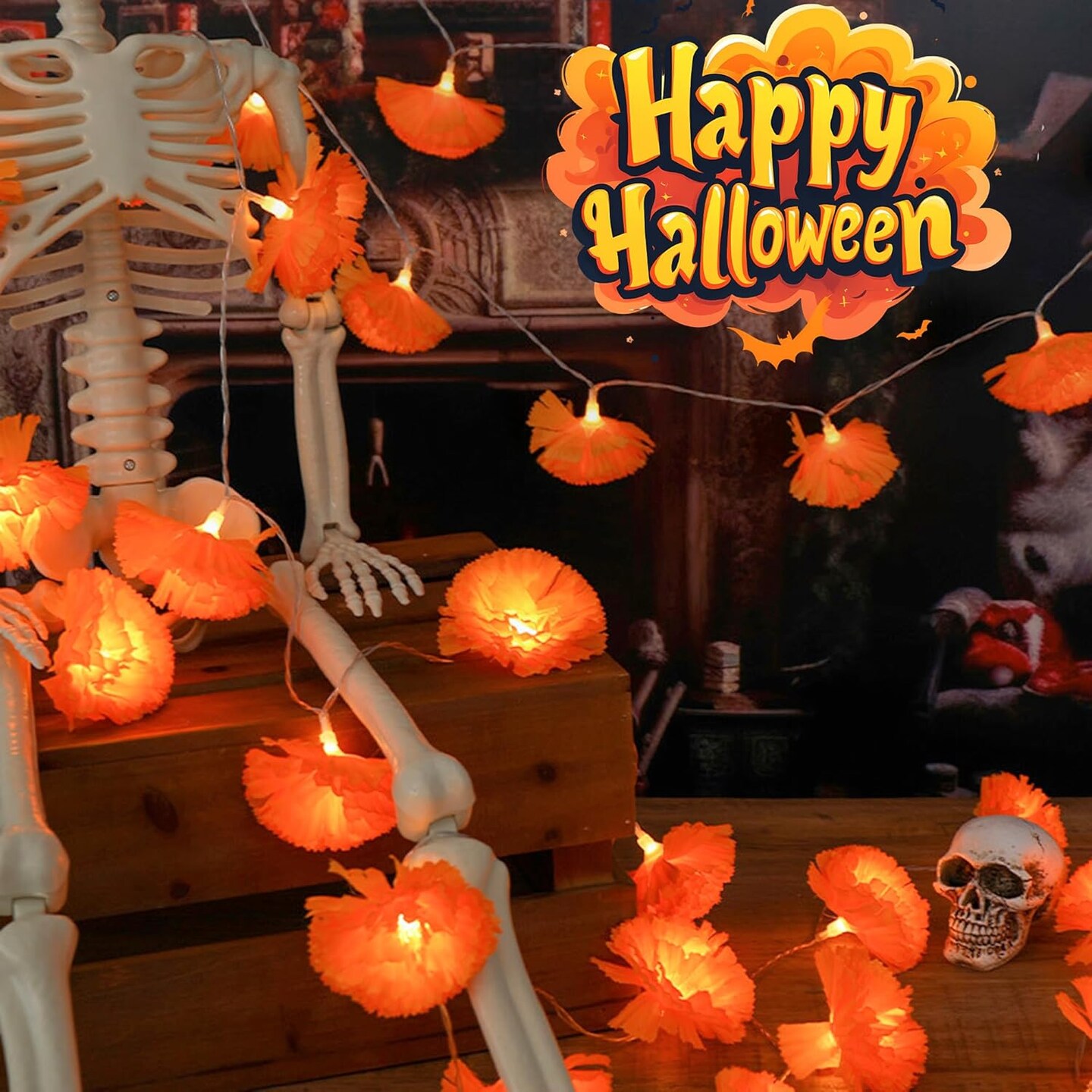 Marigold Garland String Lights Day of The Dead Decoration (Orange)