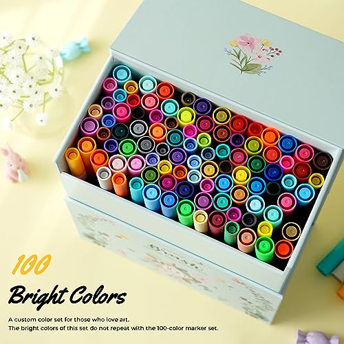 Markers for Adult Coloring Books: 100 Colors Coloring Markers Dual Tips Fine & Brush Pens Water-Based Art Markers for Kids Adults Drawing Sketching Bullet Journal Non-bleeding - Maui - White