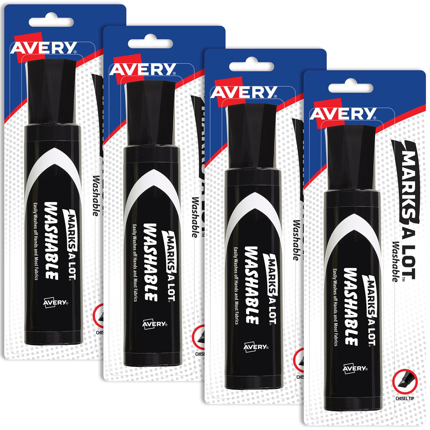 Marks A Lot Jumbo Black Washable Marker, Chisel Tip, 1 per Pack, 4 Packs, 4 Markers Total (24158)