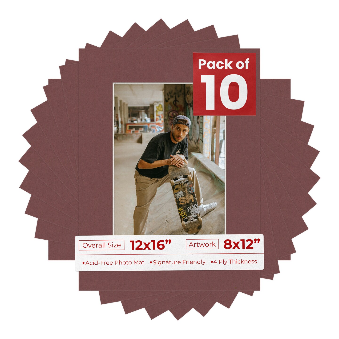Maroon Red Mat Board for 12x16 Frames - Fits 8x12 Photos