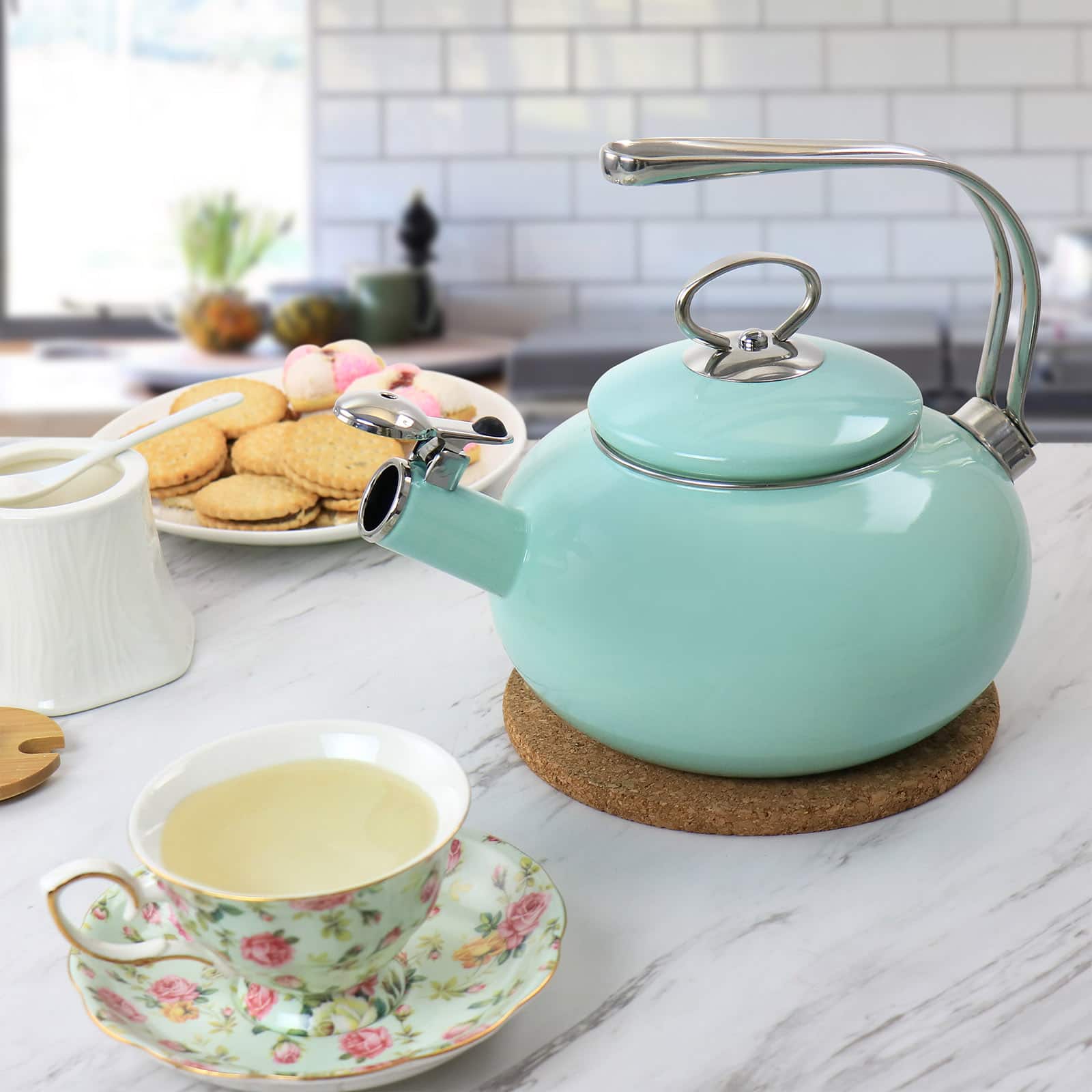 Martha Stewart 1.5qt. Mint Enamel on Steel Stovetop Tea Kettle