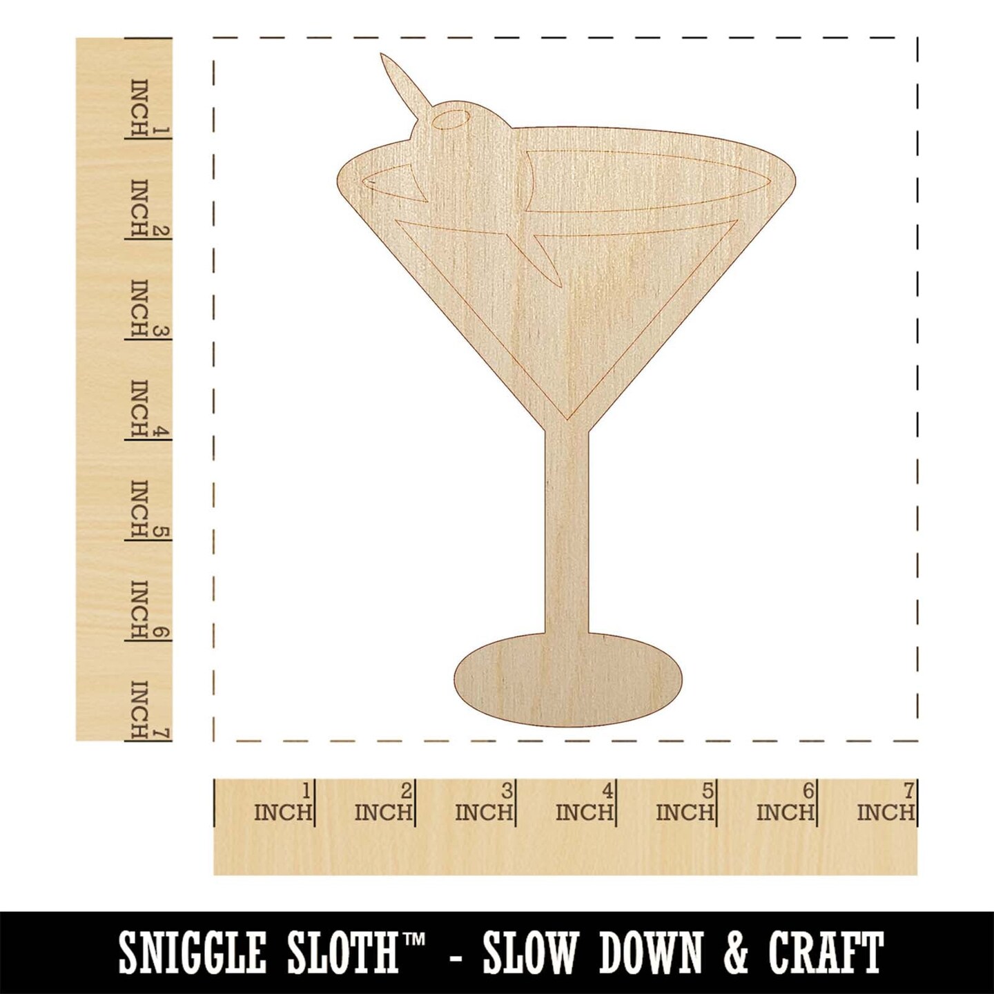 Martini Cocktail with Olive Unfinished Wood Shape Piece Cutout for DIY Craft Projects