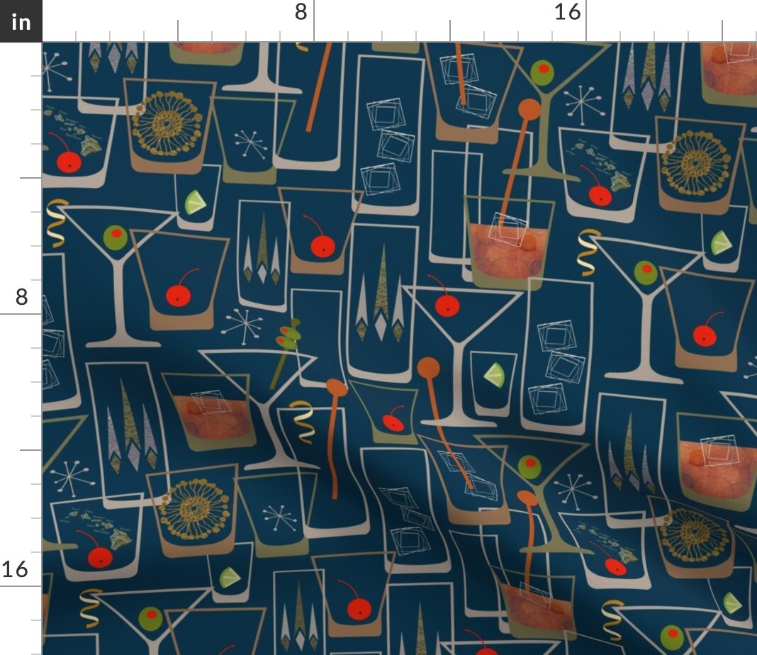 Martini Time Mid-Century Mid Century Modern Retro Inspired Atomic Era 1950S 1960S Look Custom Printed Fabric by Spoonflower Various Fabrics by the Yard or Fat Quarter
