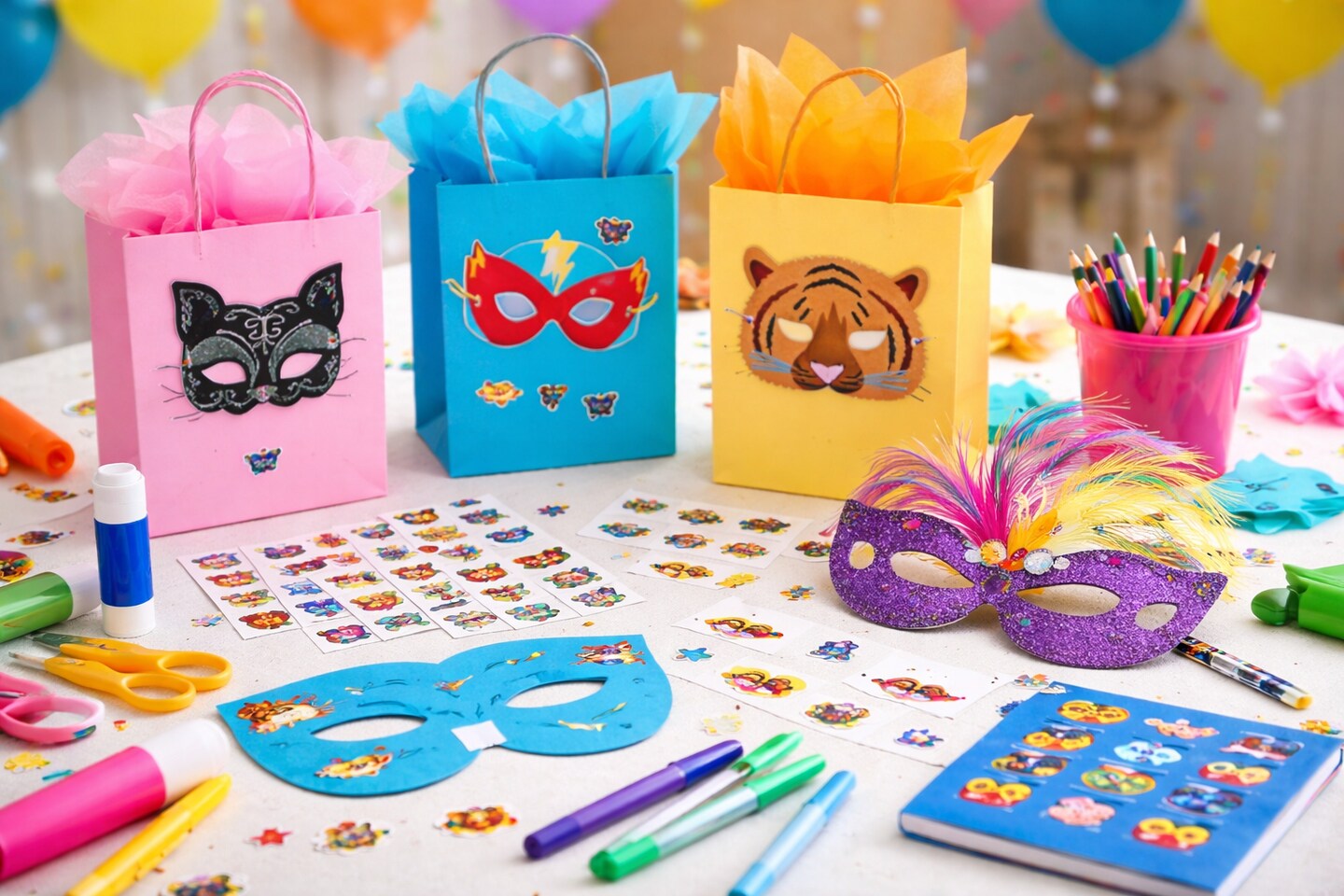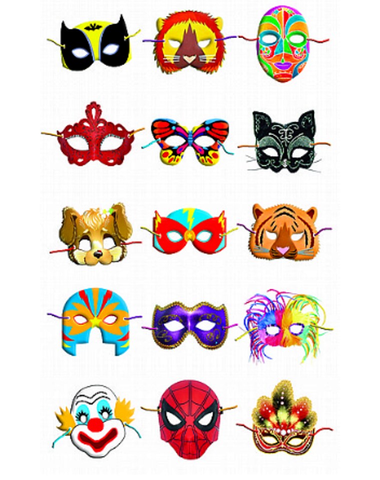 Mask Stickers 1 Inch – 120 Pack Assorted Carnival, Animal & Party Face Stickers for Crafts & Rewards