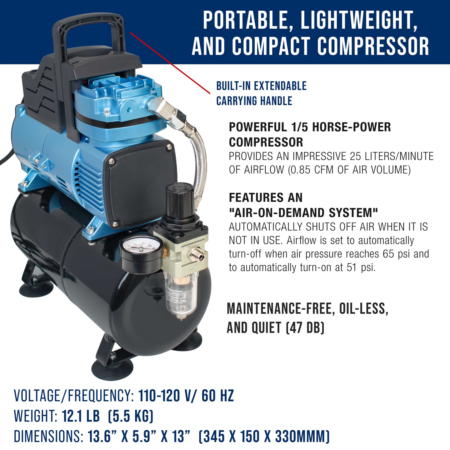 Master Airbrush 1/5 HP Super Cool Runner Dual Fan Tank Air Compressor Kit Model TC-426 - Professional Single-Piston, Regulator Water Trap, Holder