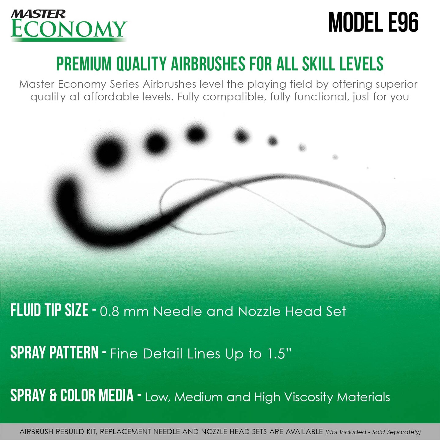 Master Economy E96 Single-Action External Mix Siphon Feed Airbrush Set with 0.5mm Tip Broad Spray Pattern & 5 ft. Air Hose