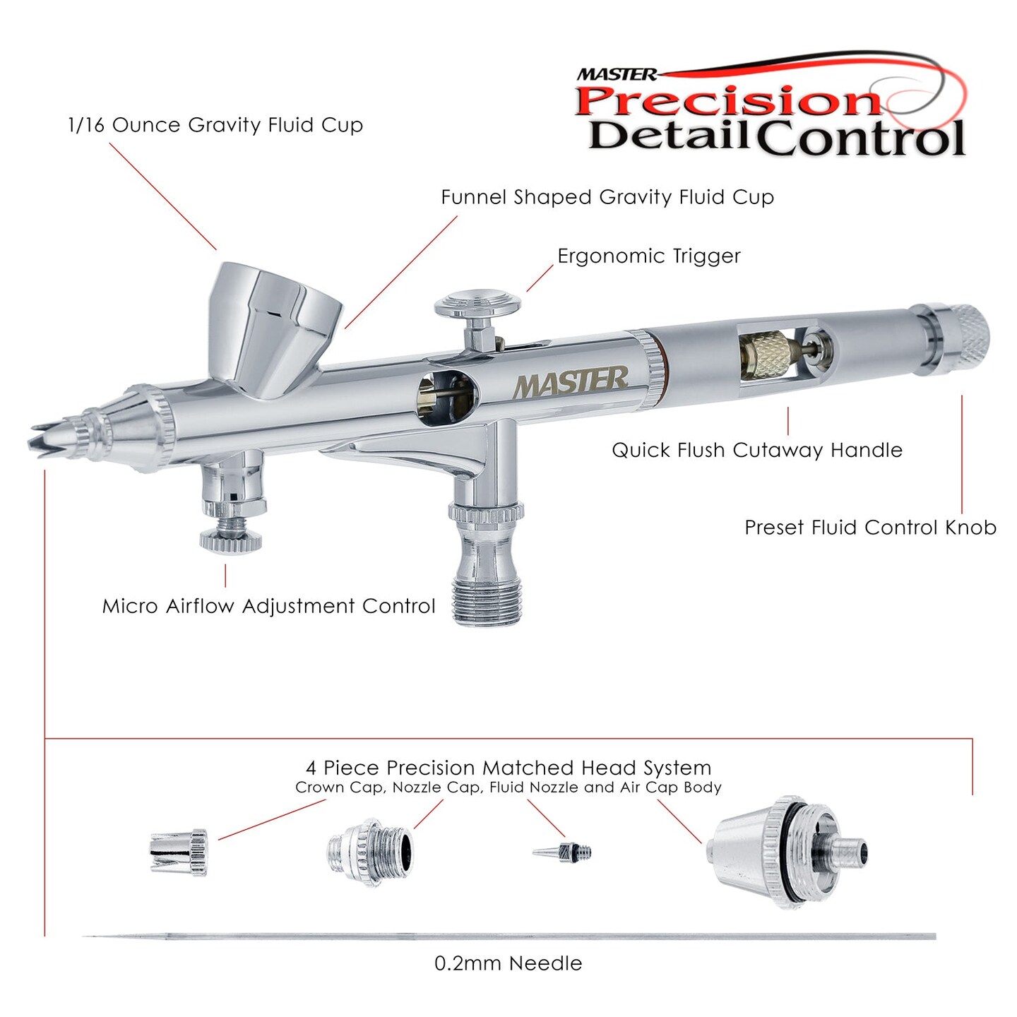 Master High Precision G48 Dual-Action Gravity Feed Airbrush, 0.2 mm Tip, Small 1/16 oz Cup, Air Control