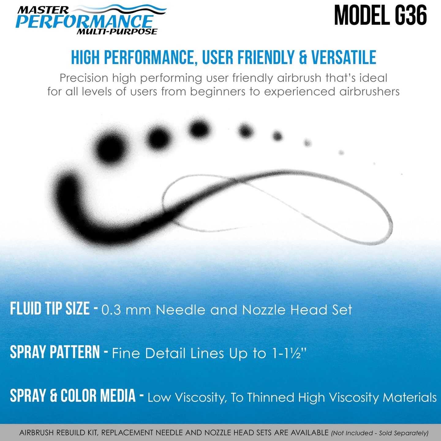 Master Performance G36 Multi-Purpose Precision Single-Action "Short Stub" Gravity Feed Airbrush, 0.3 mm Tip, 1/3 oz Cup