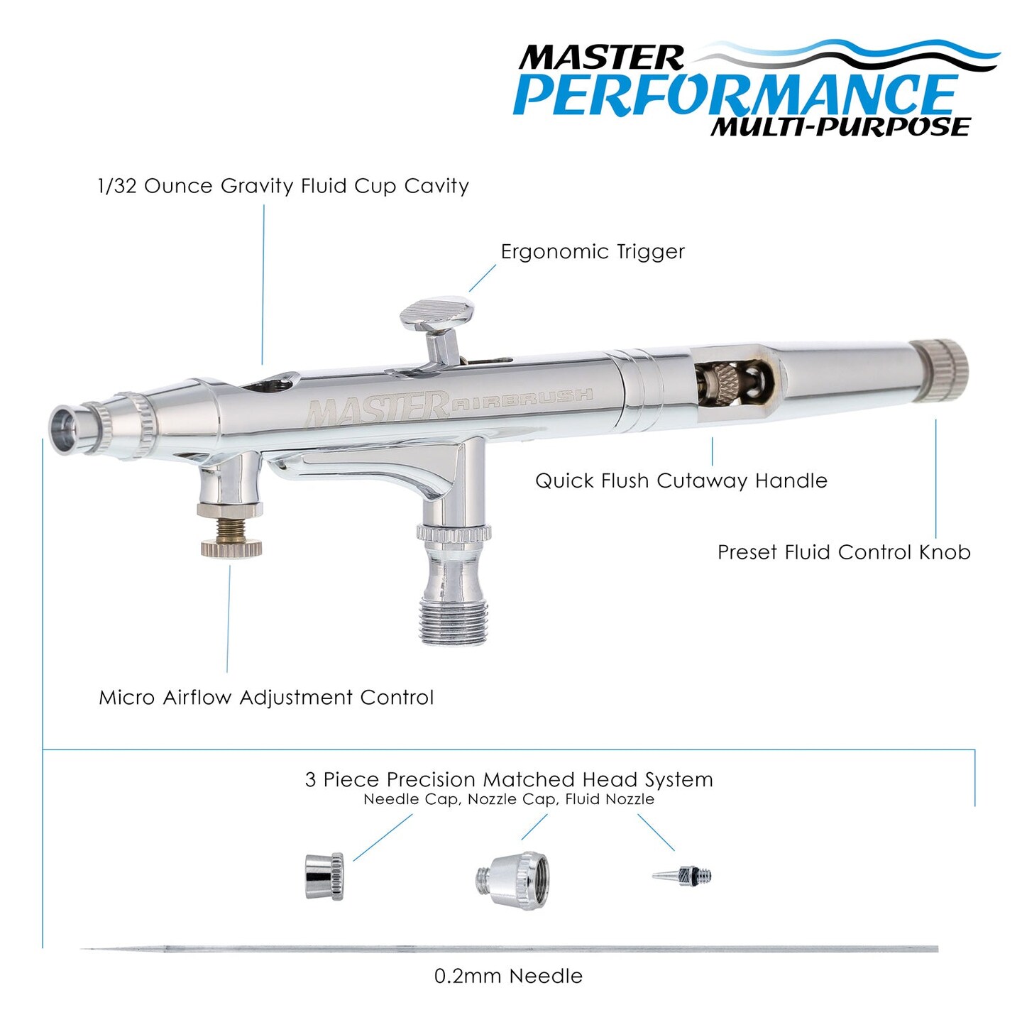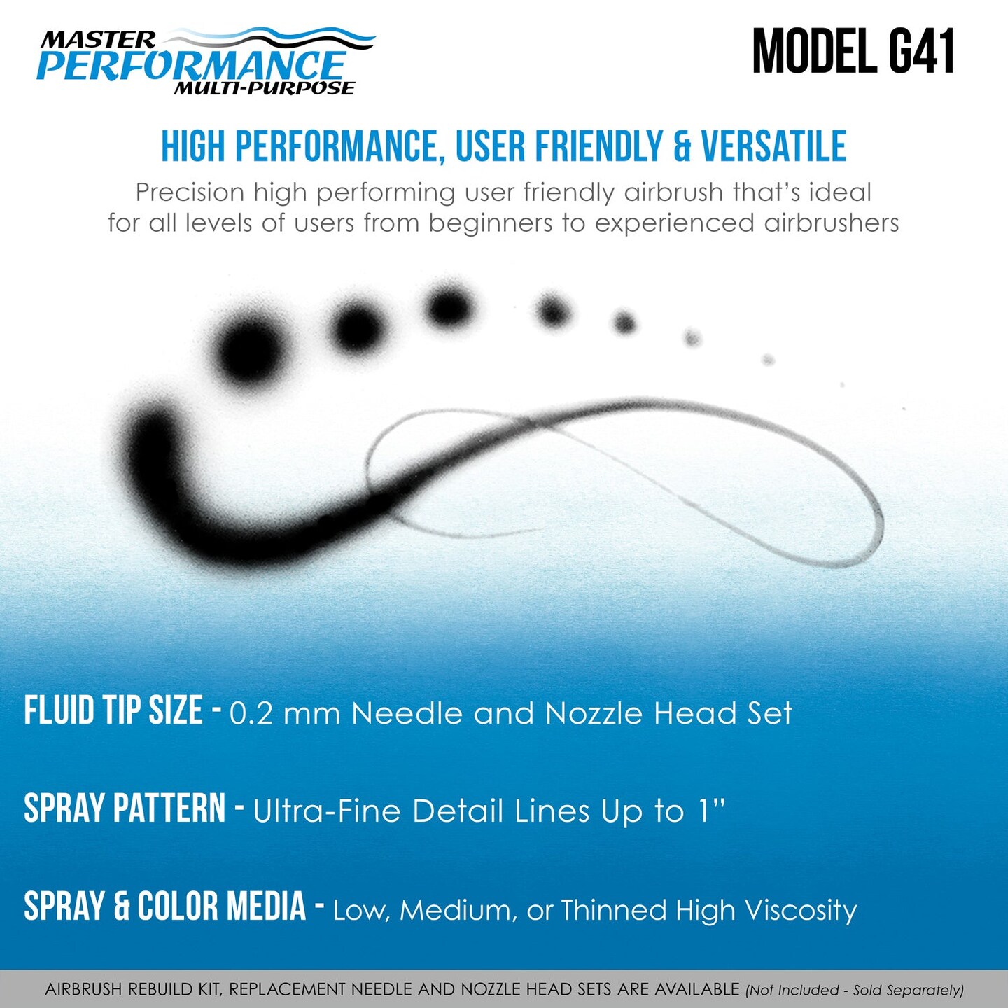 Master Performance G41 Multi-Purpose Precision Dual-Action Gravity Feed Airbrush, 0.2 mm Tip, 1/32 oz Cup, Air Control