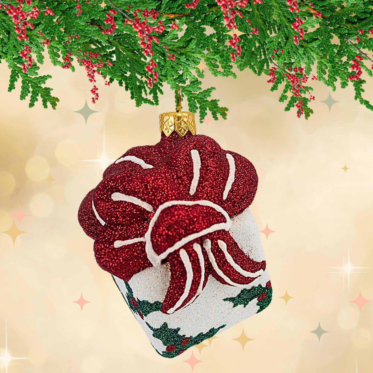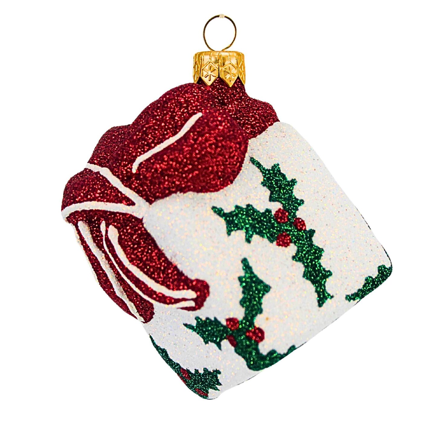 Mattarusky 3.0 Inch White Holly Present Christmas Tree Ornament , Christmas Decor Gift Holidays