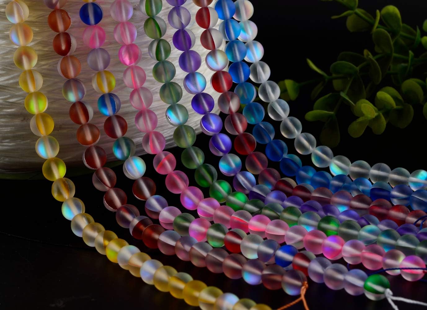 Matte Aurora Crystal Glass Beads Flash Glitter Shining Mermaid Round Loose Aura Bead Frosted Moonstone