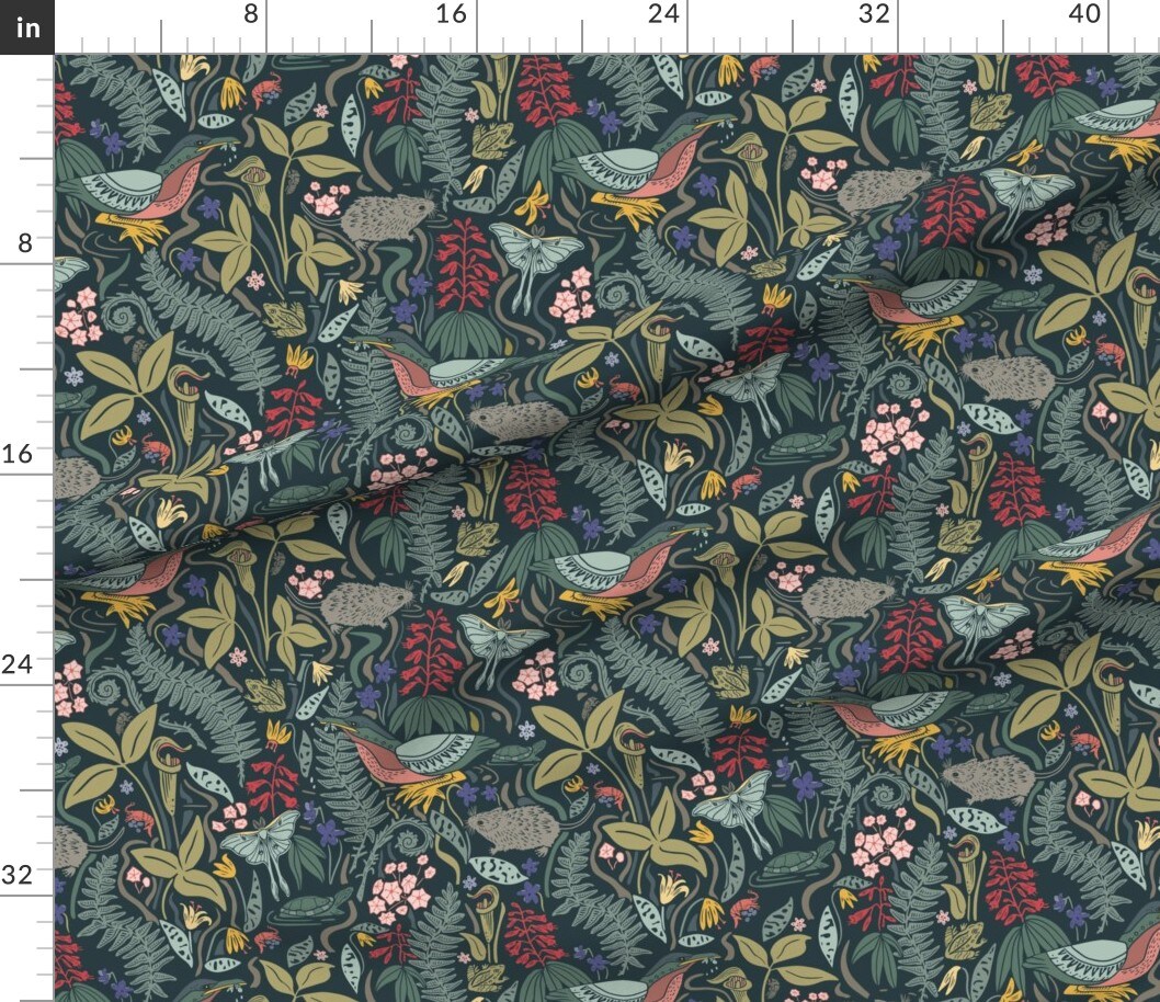 Maximalist Botanical Nature Floral Woods Forest Wetland Plants Frog Eno Moth Cicada Custom Printed Fabric by Spoonflower Various Fabrics by the Yard or Fat Quarter