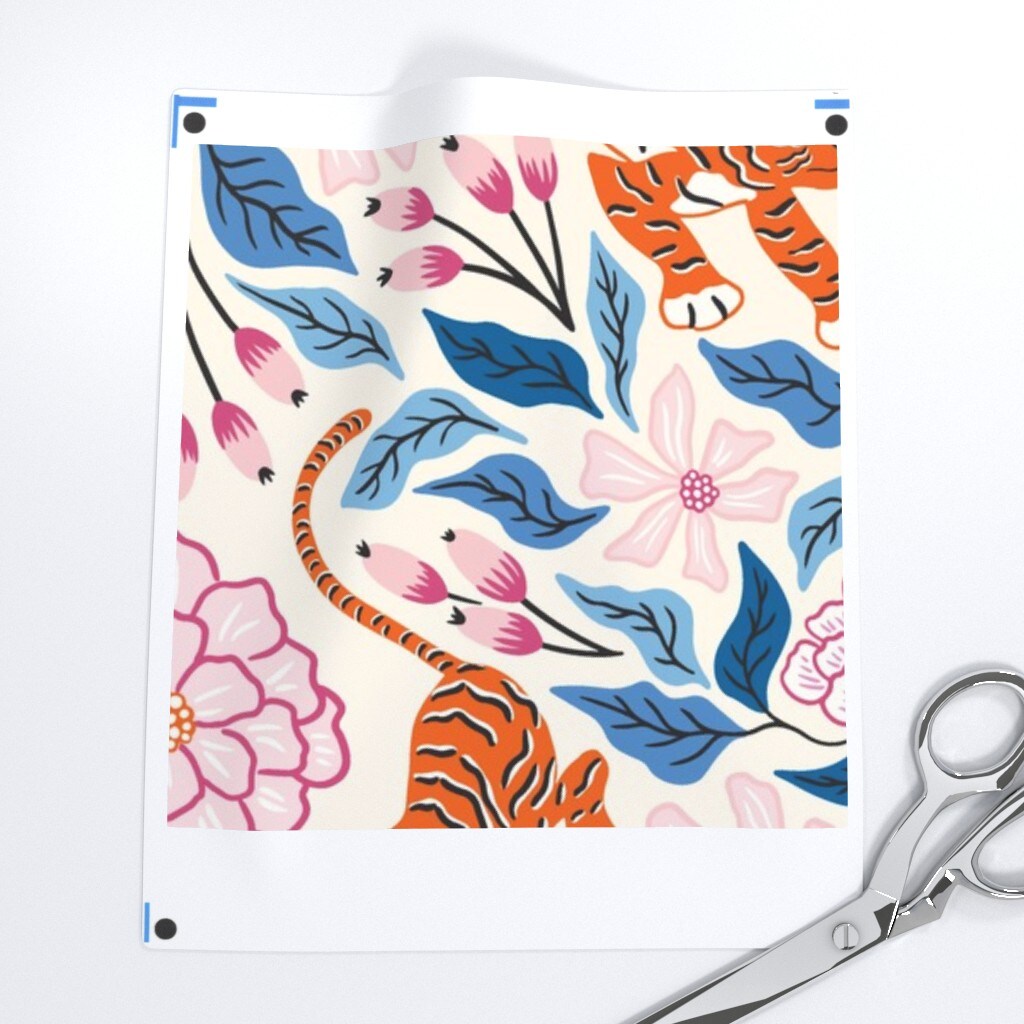 Maximalist Tropical Jungle Damask Exotic Botanical Floral Tiger Blue Custom Removable Wallpaper by Spoonflower Peel & Stick Wallpaper 2FT Wide