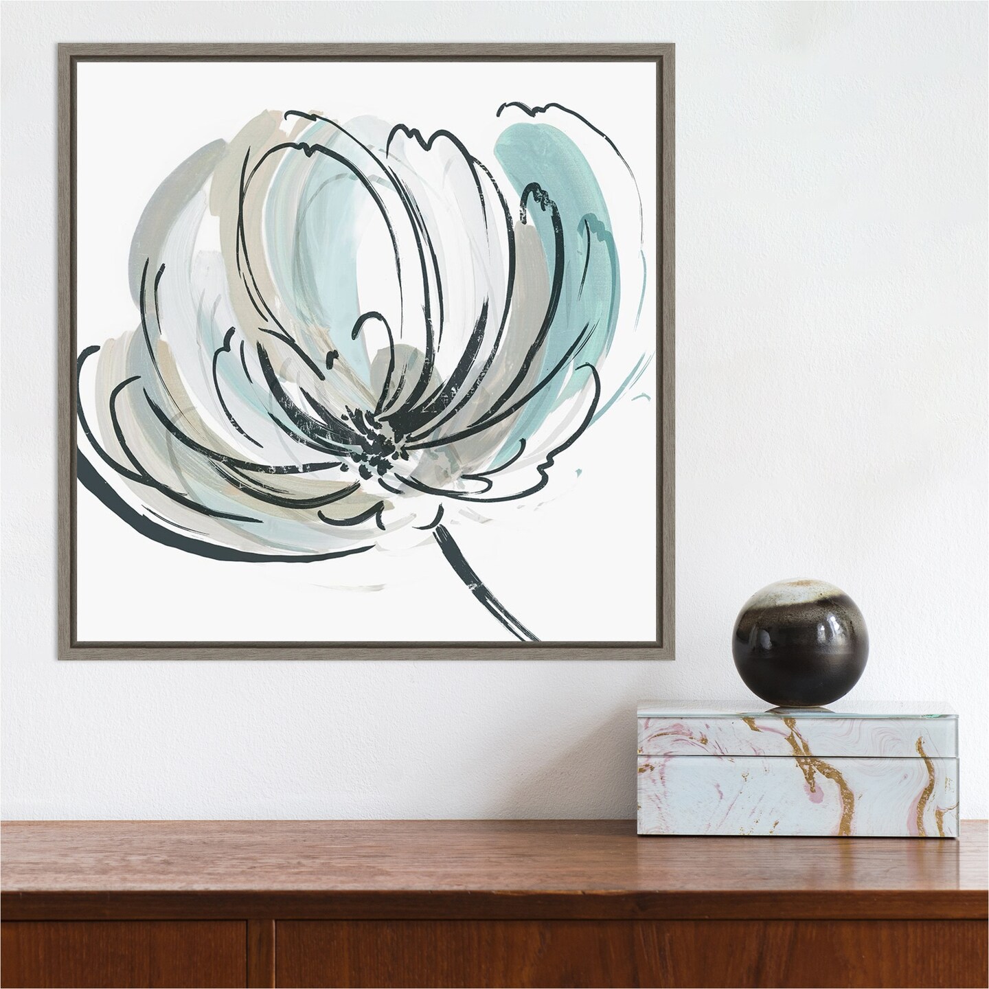 May Poem II (Flower) by Asia Jensen 16-in. W x 16-in. H. Canvas Wall Art Print Framed in Grey