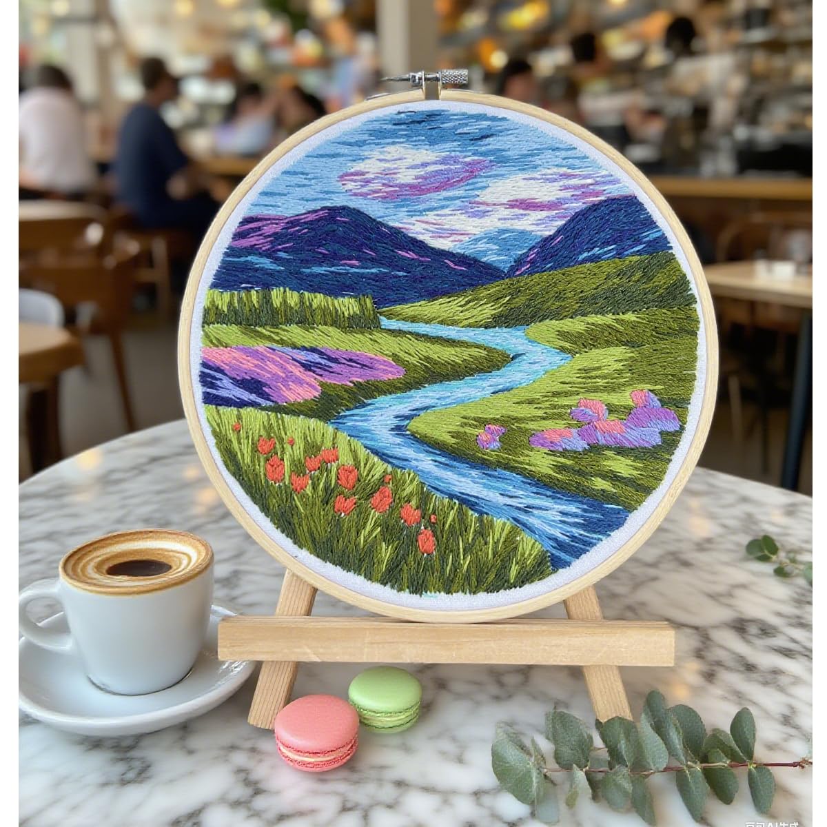 Maydear 6 Pack Embroidery Starter Kit with Pattern, Stamped Cross Stitch Kits for Beginners Adults with Embroidery Hoop and Instructions, Hand Embroidery Kit (Landscape six Sets)