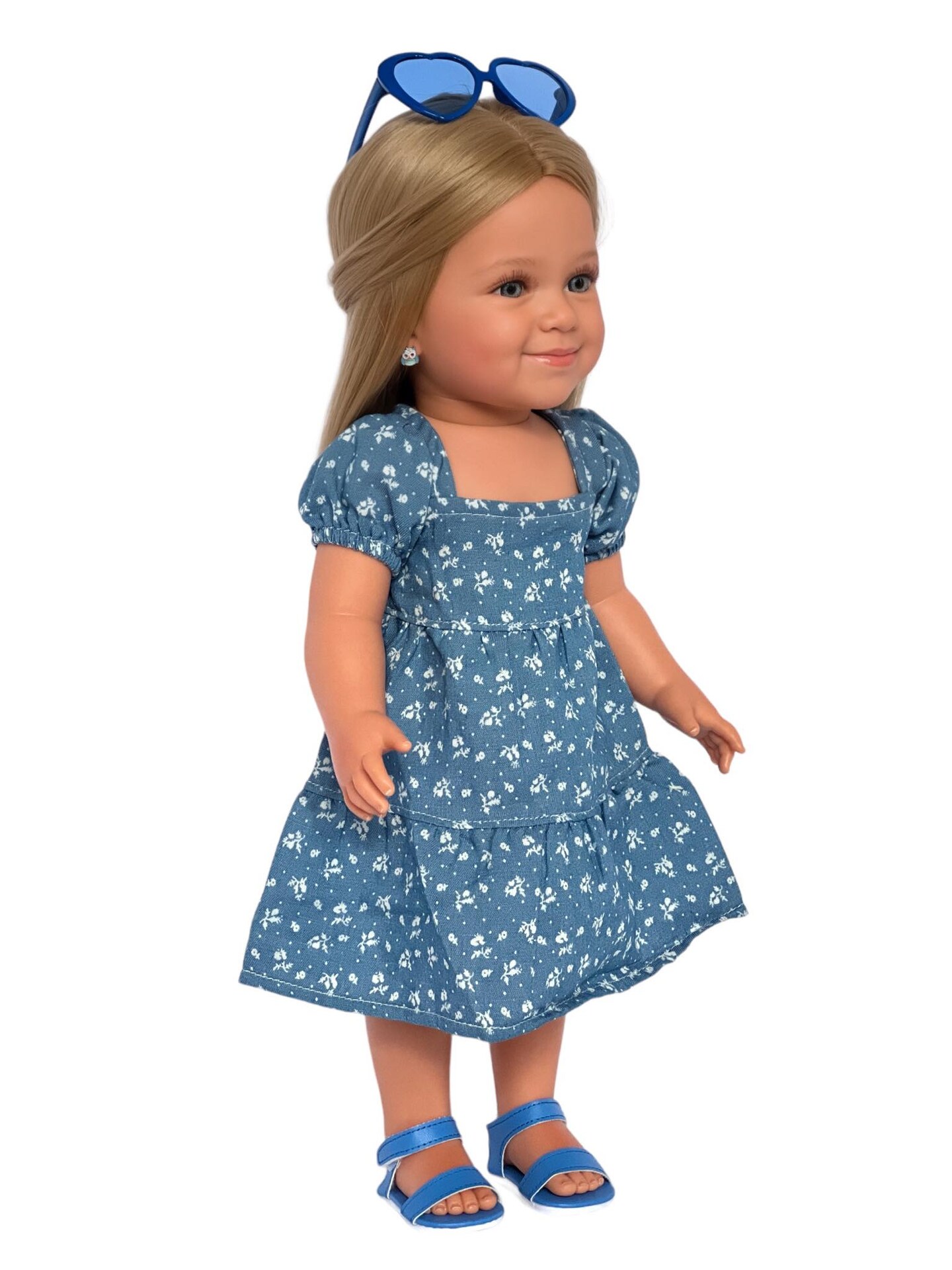 MBD Denim Maxi Dress for 18 Inch Kennedy and Friends Dolls and all Other 18 Inch Fashion Girl Doll-Complete Outfit with Sandals and Glasses