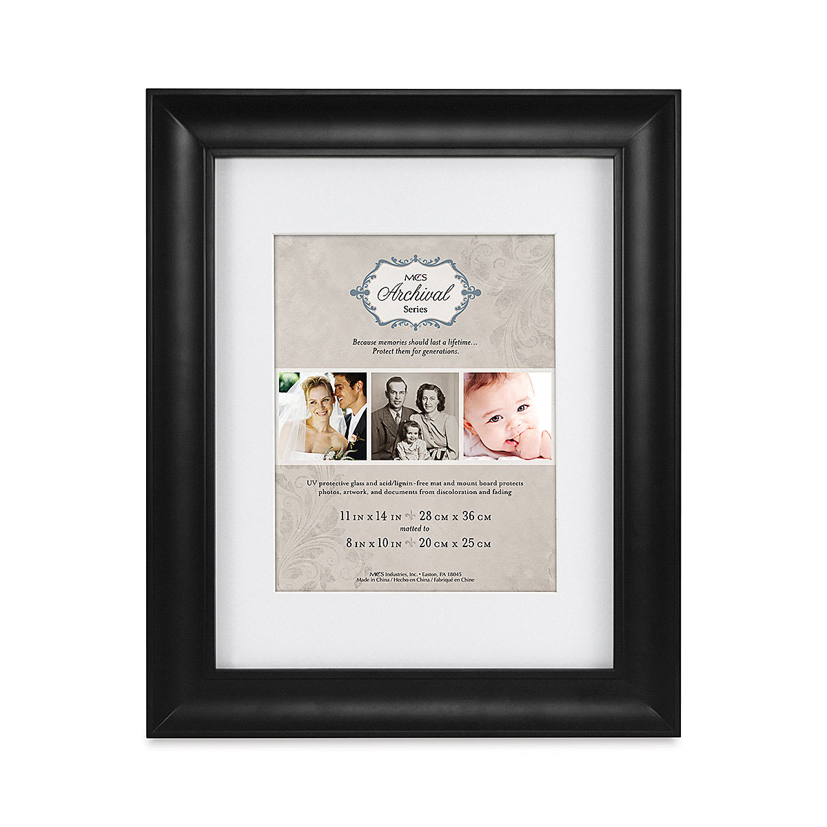 MCS Archival Series Frame - Black, 11" x 14" w/8" x 10" Mat
