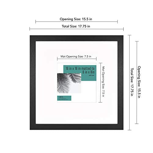 MCS Studio Gallery Frame, Black Woodgrain, 16 x 16 in matted to 8 x 8 in , Single