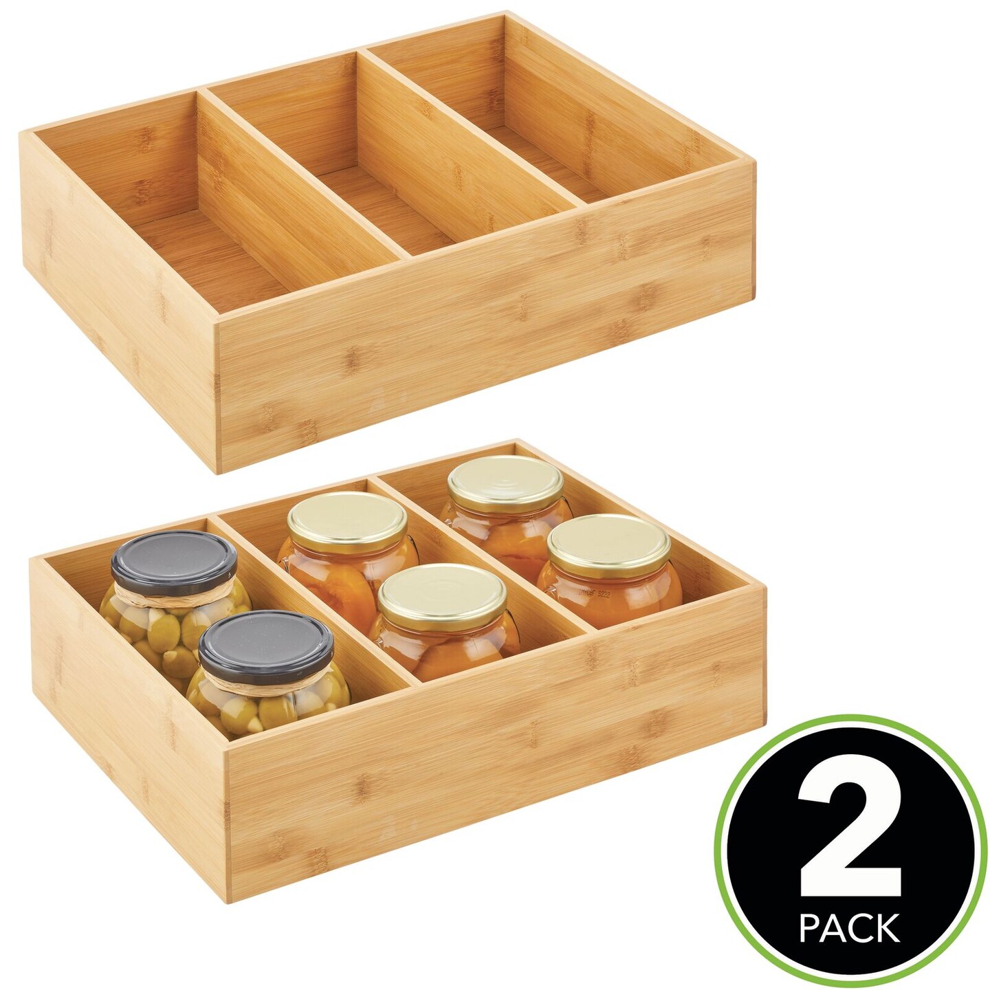 mDesign Bamboo Divided Tea, Drink, or Food Organizer Box, 2 Pack, Natural Wood