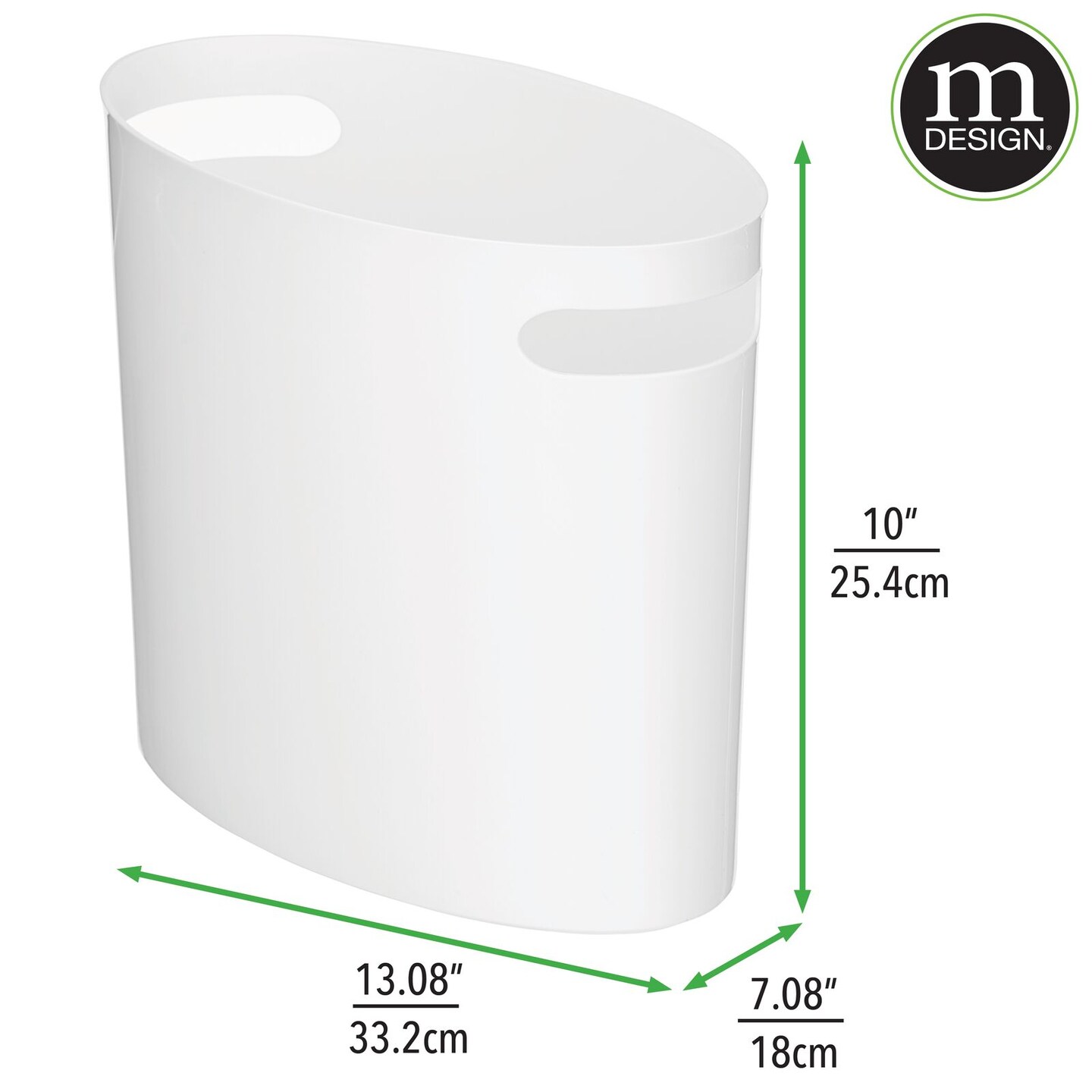 mDesign Compact Plastic Oval Trash Can Garbage Wastebasket with Handles