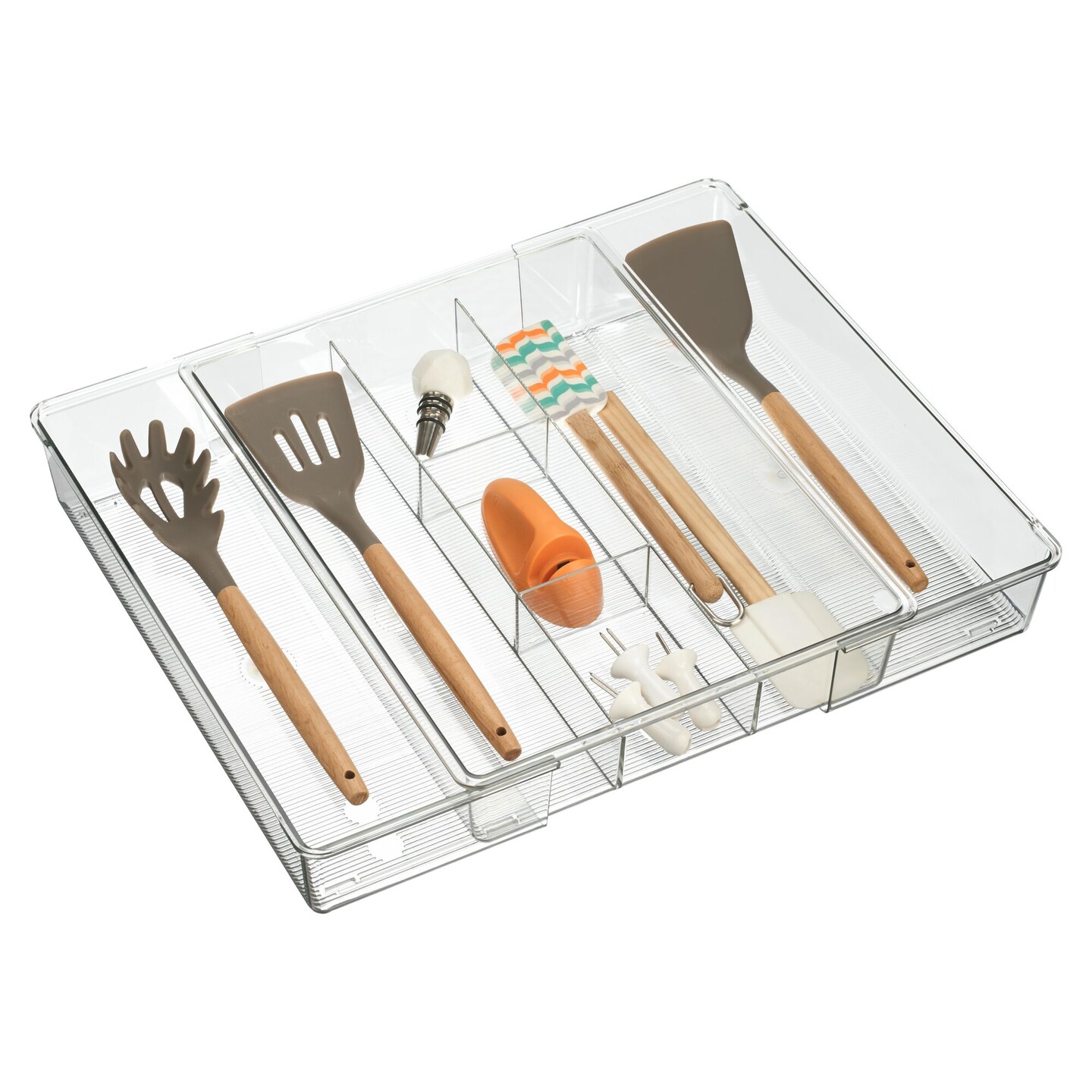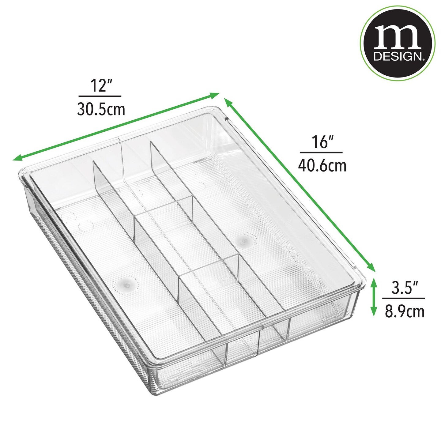 mDesign Dual Expandable Drawer 5 Section Kitchen Utensil Organizer Tray - Clear